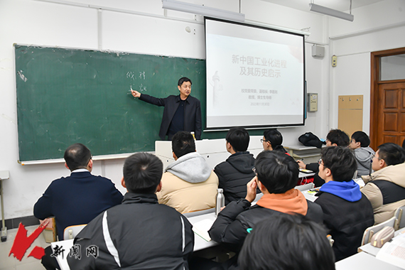 11月30日,MK体育在线(中国)唯一官方网站党委常委、副校长李胜利教授在博学楼B210教室,为机设2021级1、2、3班的学生上了一堂题为《中国工业化的辉煌成就》的思想政治理论课。