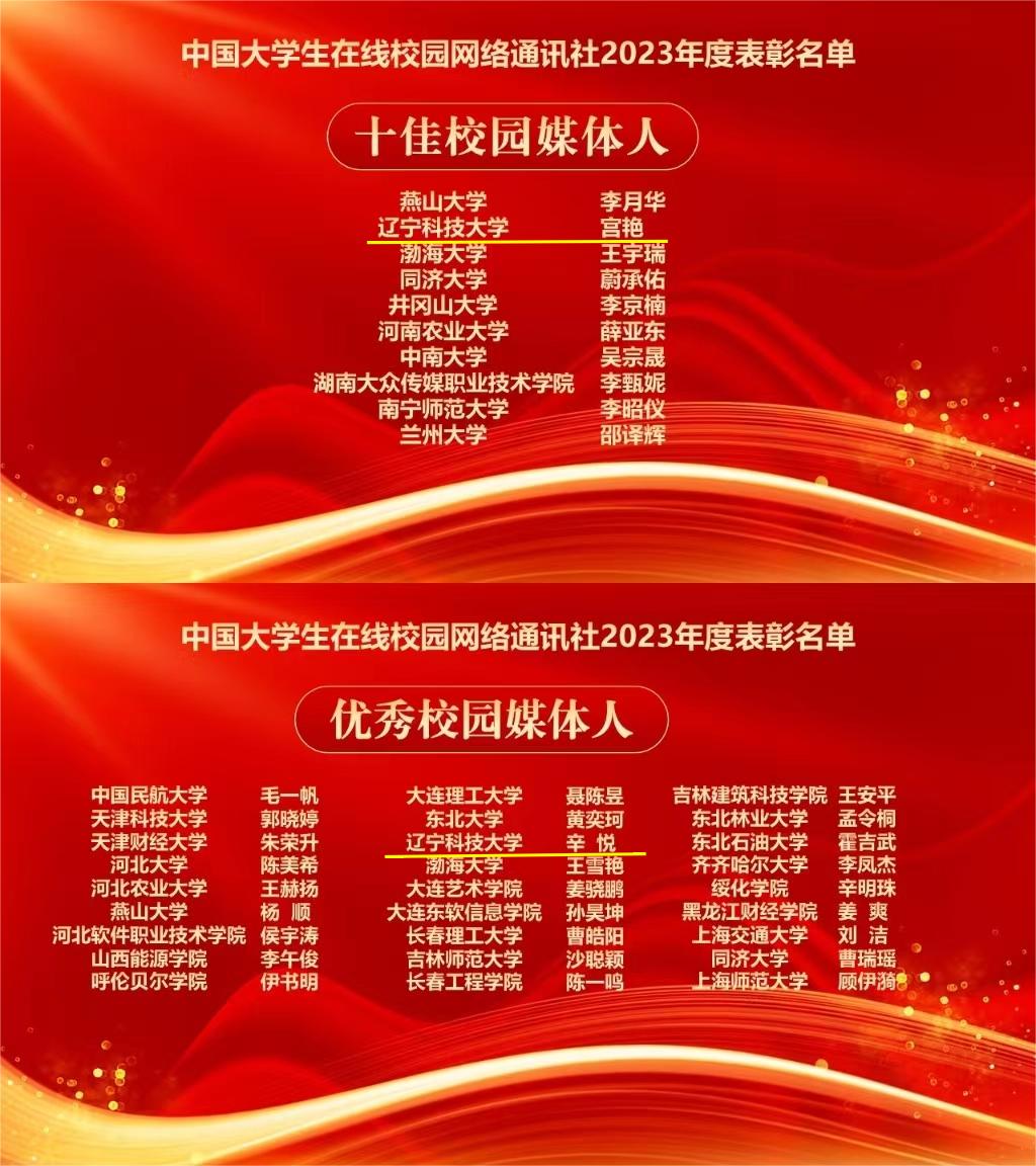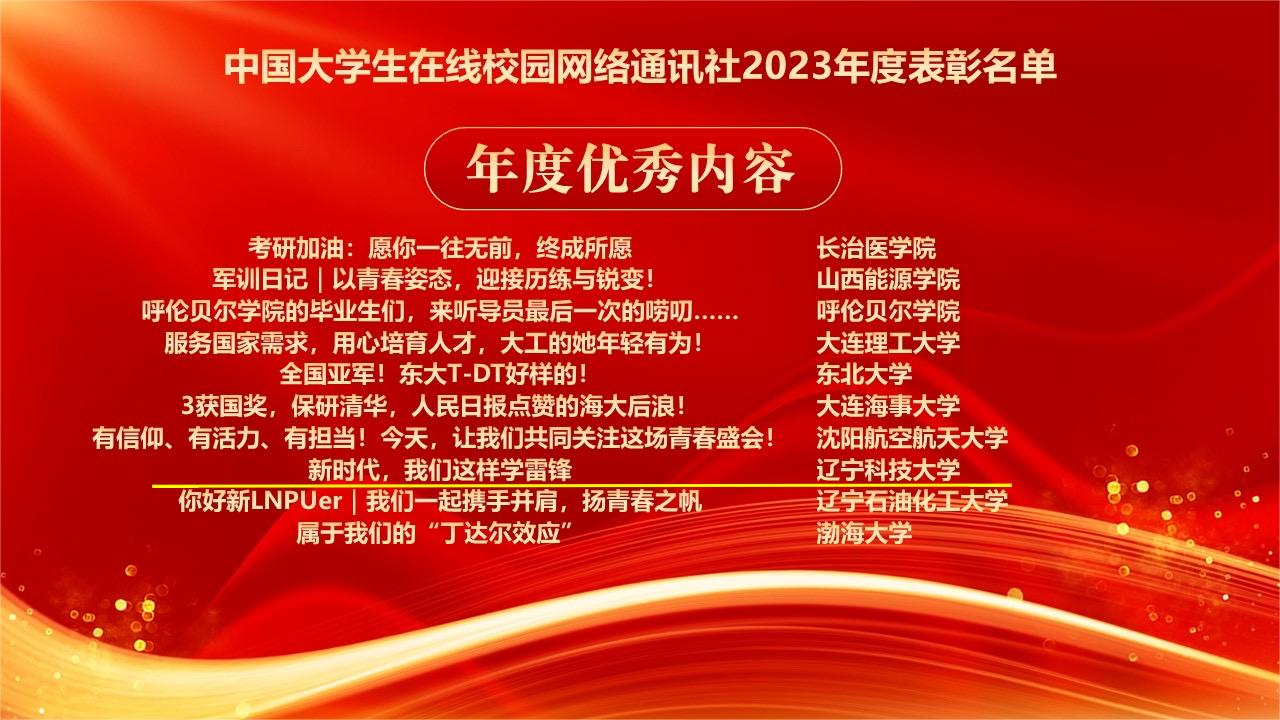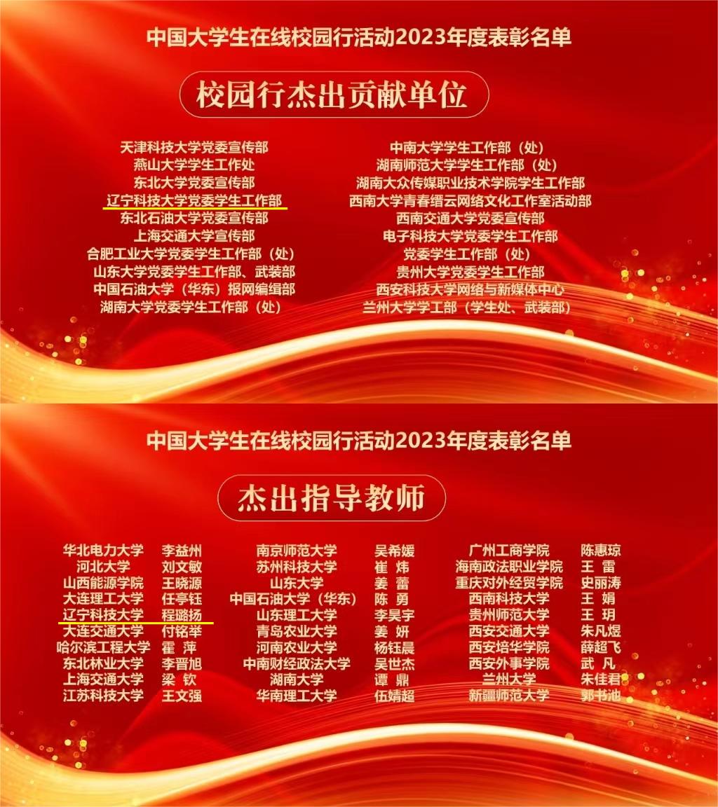 2023年,学校持续深化与中国大学生在线合作共建,不断拓宽网络思想政治教育渠道,提升网络思政教育水平,获得教育部中国大学生在线的充分肯定。此次表彰中,MK体育在线(中国)唯一官方网站党委学生工作部获评“校园行杰出贡献单位”,MK体育在线(中国)唯一官方网站网通站获评教育部中国大学生在线“十佳校网通站”,程璐扬获评“校网通十佳指导教师”“校园行杰出指导教师”,校网通站学生宫艳获评“十佳校园媒体人”、辛悦获评“优秀校园媒体人”,“新时代,我们这样学雷锋”获评“年度优秀内容奖”。