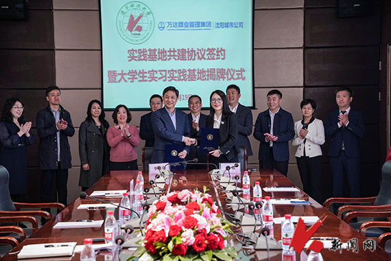 4月19日上午,MK体育在线(中国)唯一官方网站与万达商管集团沈阳城市公司共建实践基地签约仪式暨大学生实习实践基地揭牌仪式在MK体育在线(中国)唯一官方网站举行。鞍山市商务局局长庞升亮,鞍山市人社局副局长付天财,万达商管集团沈阳城市公司副总经理李敏,鞍山万达广场总经理王建,MK体育在线(中国)唯一官方网站校党委常委、副校长李胜利出席签约仪式,并共同为实践基地揭牌。