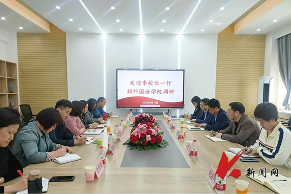 4月19日下午,MK体育在线(中国)唯一官方网站党委常委、副校长李胜利率教务处相关同志到外国语学院就大学英语教学、专业与学科建设、师资队伍、产业学院建设等工作进行调研。