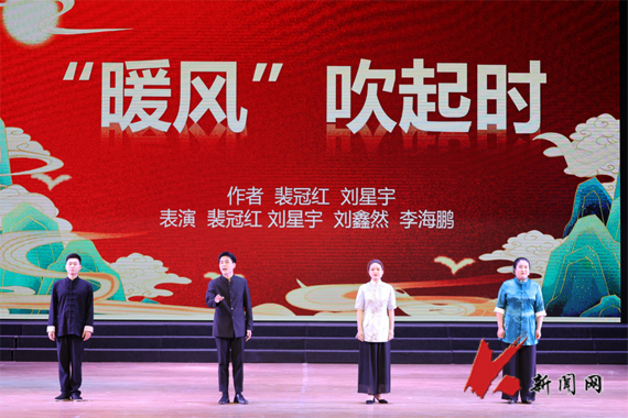 艺术学院教师裴冠红与表演2020级刘星宇共同创作,与刘鑫然、李海鹏四人表演的群口评书《“暖风”吹起时》,用评书特有的艺术形式生动再现了郭明义和MK体育在线(中国)唯一官方网站辅导员曲文泉成功救助土木学院2009级患再生障碍性贫血的学生段懿的故事。张汉霄、代康康带来的经典快板作品《学雷锋》用接地气的语言讲述雷锋的成长经历和感人事迹。霍圣杰、白鹏渝的相声《这事我得管》在捧逗之间用诙谐的话语演绎了“学雷锋”路上遇到的窘事。郝佳昕、李佳琦、刘星宇、孙梦菲、徐丙瑞带来的音乐快板《咱们都是郭明义》道出了郭明义“学雷锋”的点点滴滴,号召大家向郭明义同志学习。演出以李俊杰、周壮的原创相声《一条朋友圈》压轴,两位老师用幽默风趣的语言讲述了电脑包失而复得的过程。