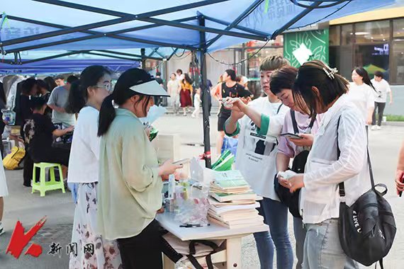 6月13日上午,志愿者们早早地来到龙源社区广场,支好帐篷、摆放桌椅、搬运物资……50余个特色摊位每天吸引近千名师生驻足。集市让同学们日常学习生活中的闲置物品得到了最高效流通和最大化利用,实现“书有所属、物尽其用”,帮助毕业生们离校前进一步“减肥瘦身”。