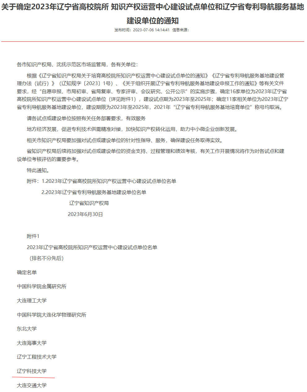 近日,辽宁省知识产权局公布了首批辽宁省高校院所知识产权运营中心建设试点单位,MK体育在线(中国)唯一官方网站成功获得批定。