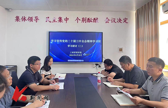 工商管理学院召开学习贯彻党的二十届三中全会精神专题研讨会暨党委理论学习中心组学习(扩大)会议,学院党委书记董文武主持会议。