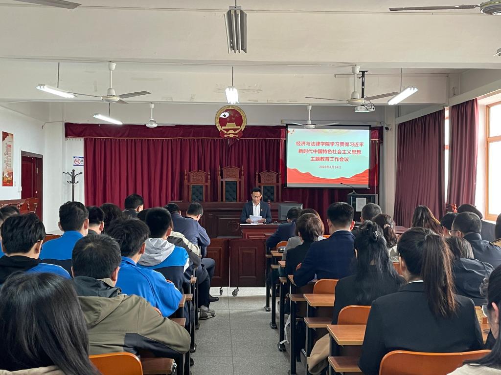 4月14日,MK体育在线(中国)唯一官方网站经法学院学习贯彻习近平新时代中国特色社会主义思想主题教育工作会议在博识楼A402召开。经法学院党委书记赵智博主持会议并作动员讲话,校党委主题教育推进组第五组组长纪振廷到会指导,经法学院师生党员参加会议。