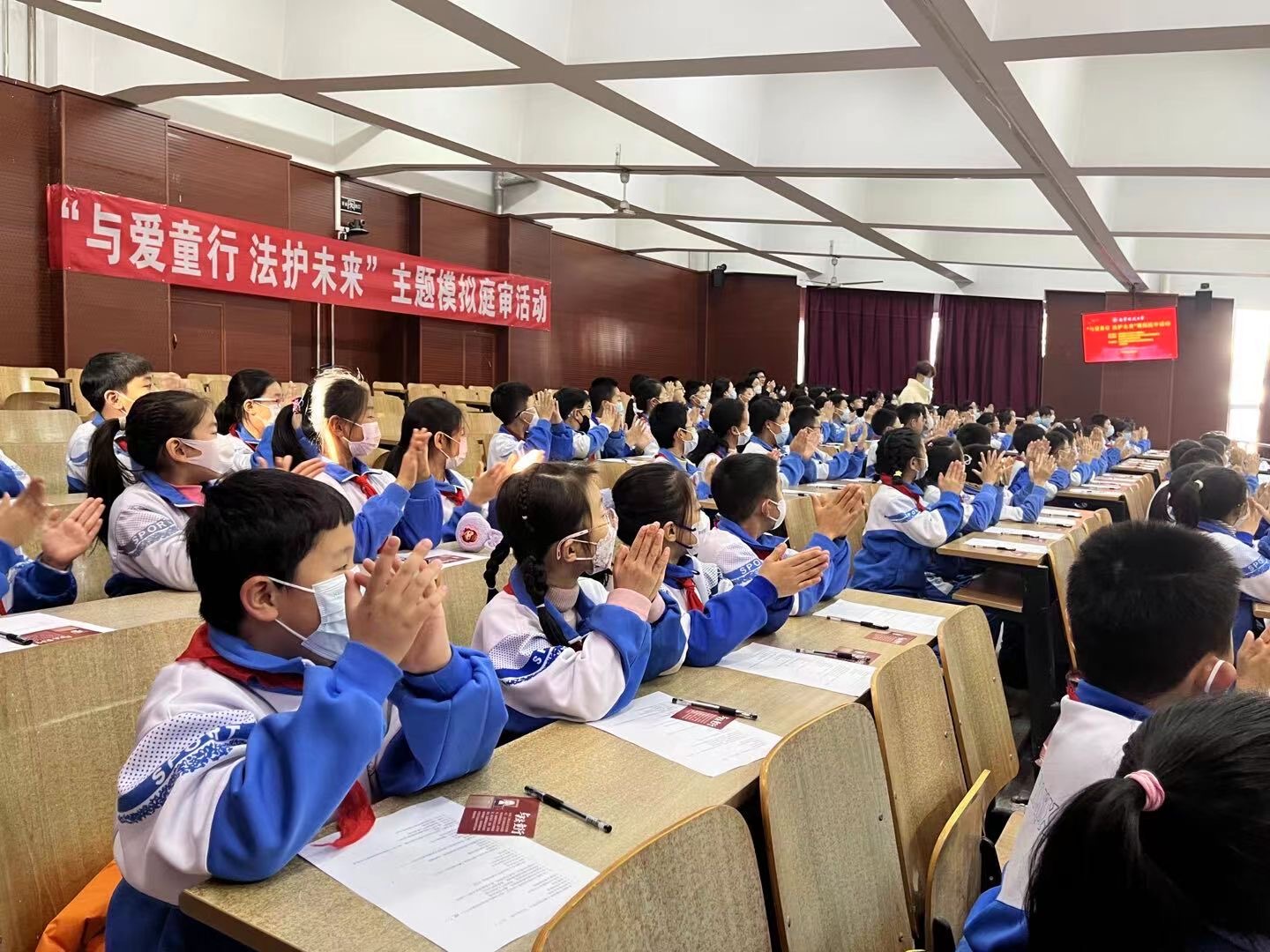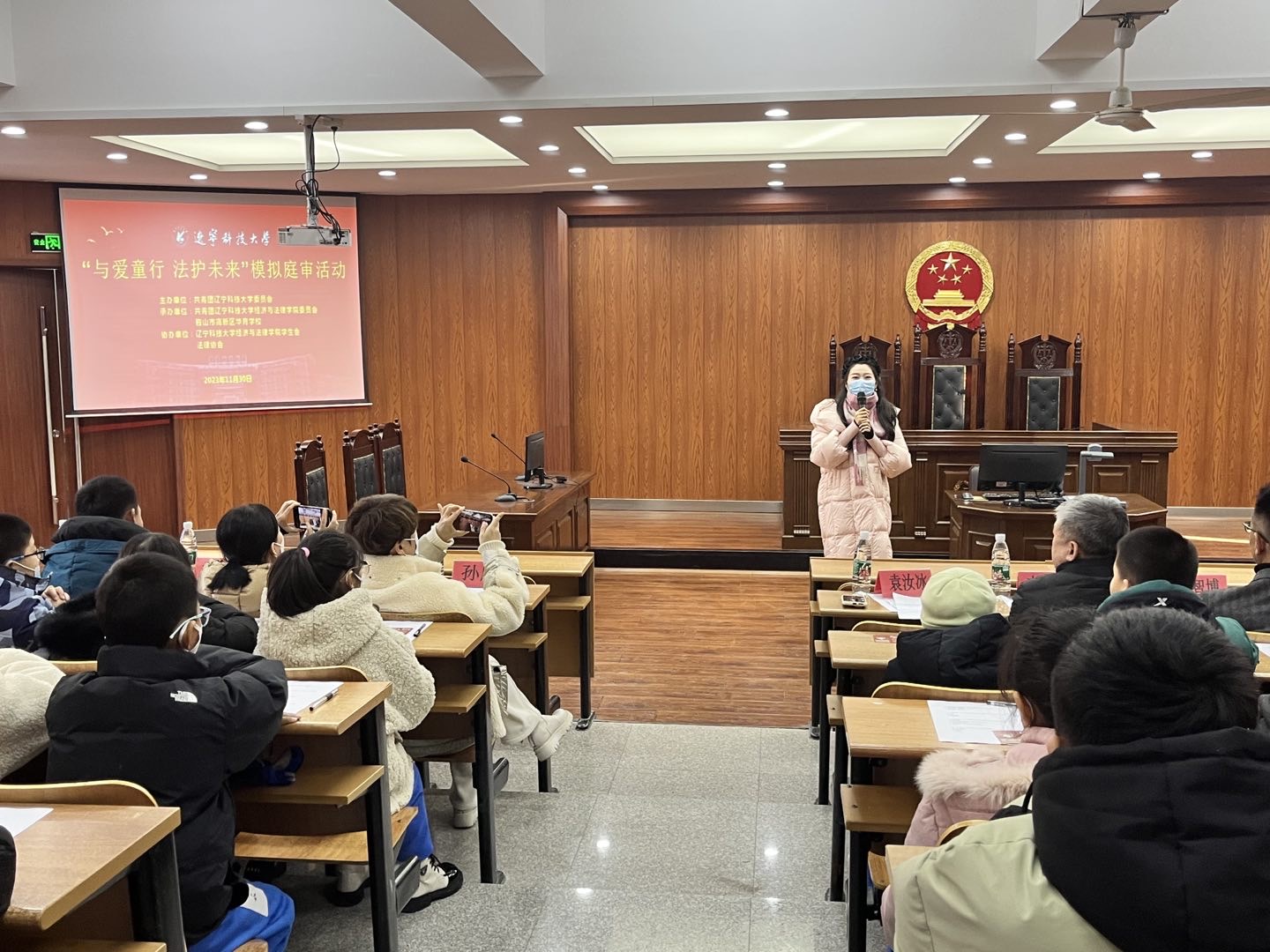 在国家宪法日来临之际,11月30日,经法学院于明德楼A214开展“与爱童行,法护未来”主题模拟庭审展演活动。活动邀请鞍山华育高新区学校160余名师生走进模拟法庭现场,观看模拟庭审活动。