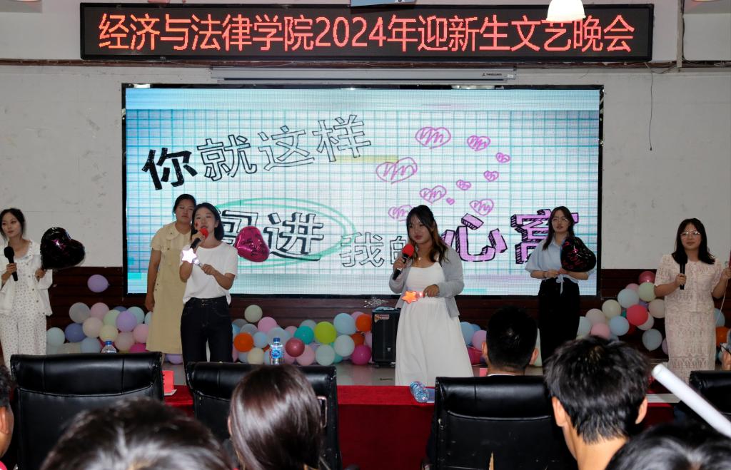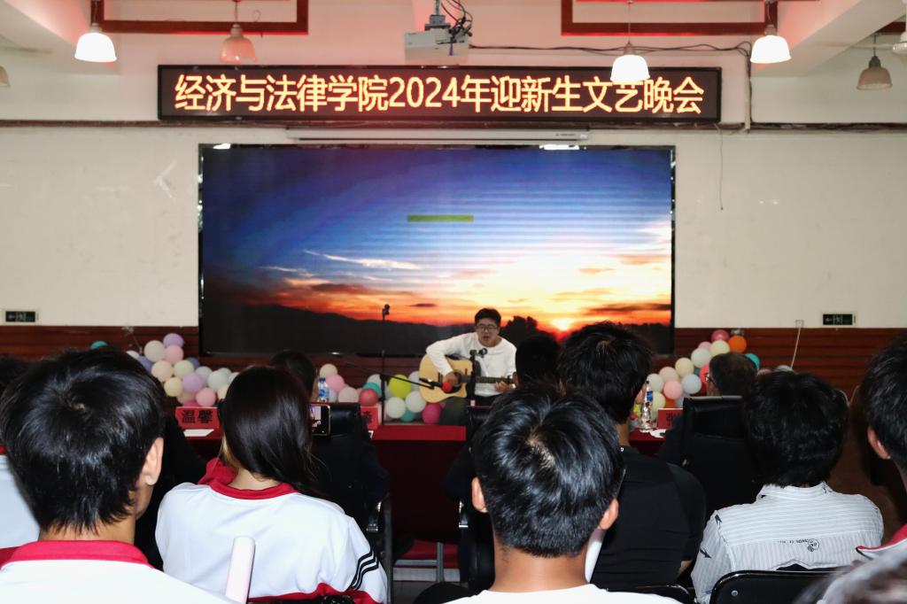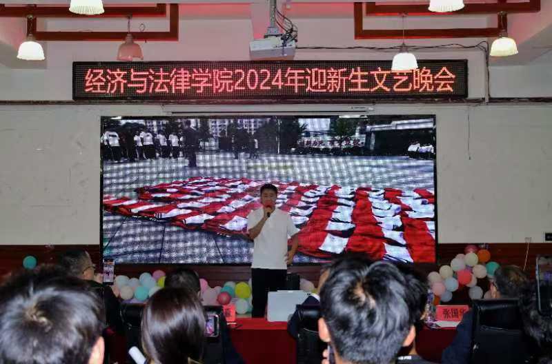共赏中秋月,人间话团圆。9月17日晚,经法学院于明德楼大学生活动中心举办了以“中秋同国庆 师生共团圆”为主题的迎新生文艺晚会。学院党政领导及辅导员、团学骨干、新生班导生以及全体2024级新生近300人观看了本场演出。