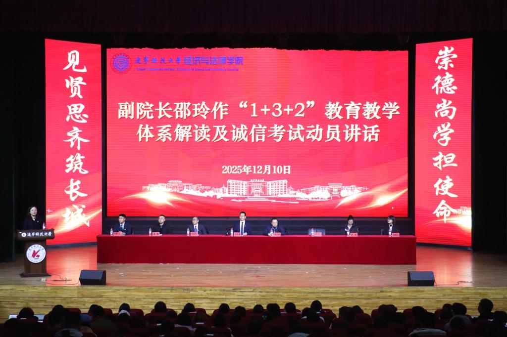 学院副院长邵玲重点解读了学院在贯彻落实学校“1+3+2”教育教学体系的核心理念和实施路径,强调其在促进学生全面发展中的重要作用。邵院长还进行了诚信考试动员,号召全体学生端正态度、严谨治学,以真实成绩检验学习成效。