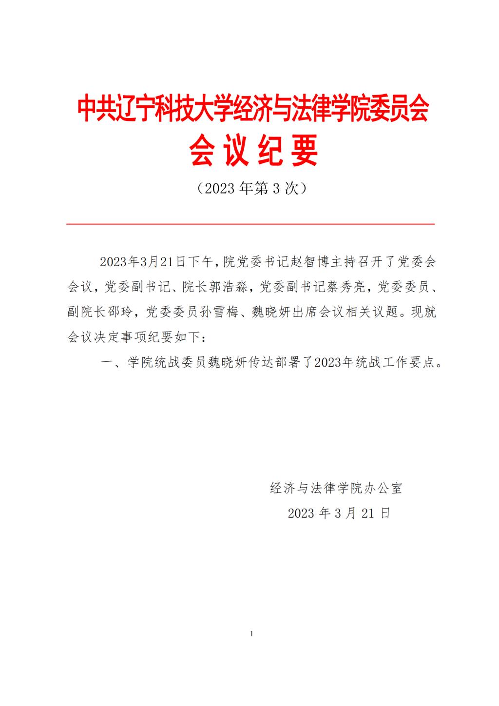 中共MK体育在线(中国)唯一官方网站经济与法律学院委员会会议纪要(2023年第3次)