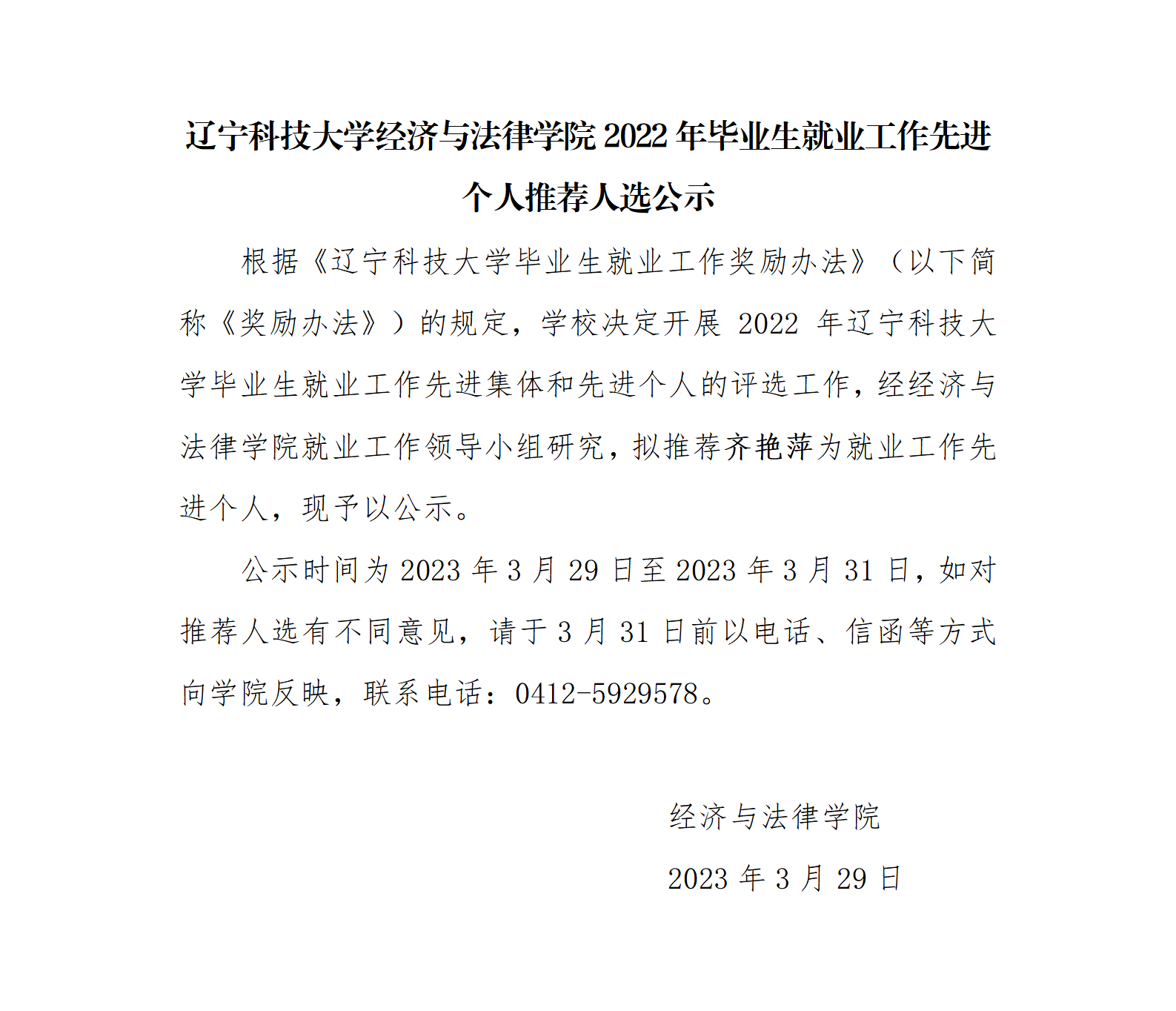 MK体育在线(中国)唯一官方网站经济与法律学院2022年毕业生就业工作先进个人推荐人选公示