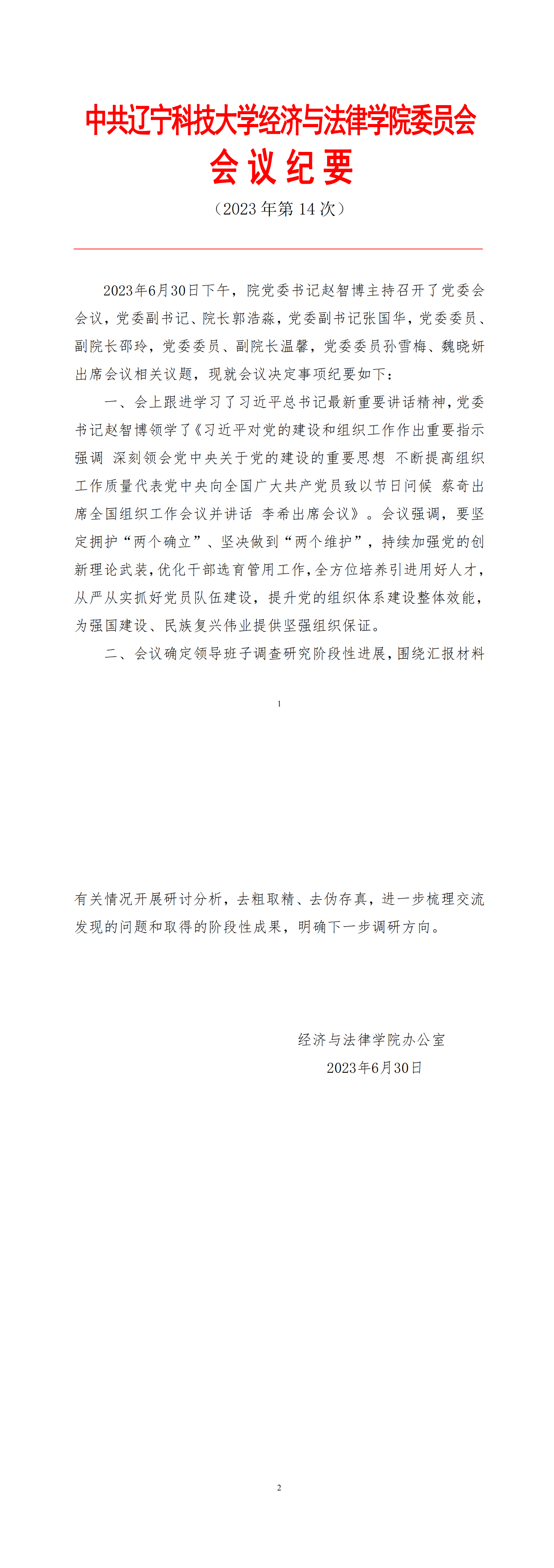 中共MK体育在线(中国)唯一官方网站经济与法律学院委员会会议纪要(2023年第14次)