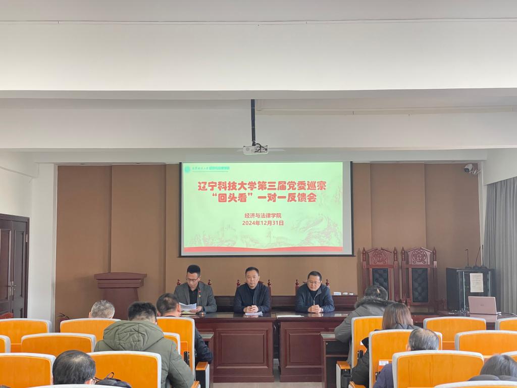 根据党委巡察工作领导小组的部署,2024年12月31日,党委巡察组在博识楼A402向经法学院党委反馈了巡察“回头看”情况。院长郭浩淼主持会议,巡察组组长陈功庆同志反馈巡察“回头看”情况,院党委书记赵智博同志作表态发言。
