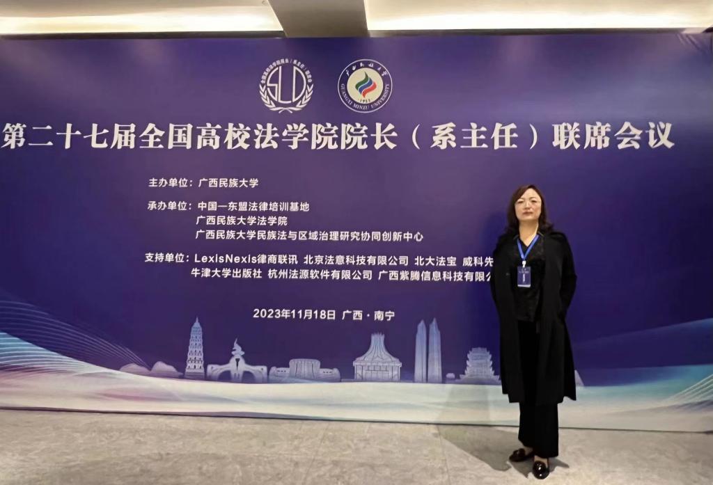 2023年11月17日至20日,第二十七届全国高校法学院院长(系主任)联席会议在广西壮族自治区南宁市召开,来自全国100多所高校法学院院长和系主任参加会议,经济与法律学院副院长邵玲应邀参加。