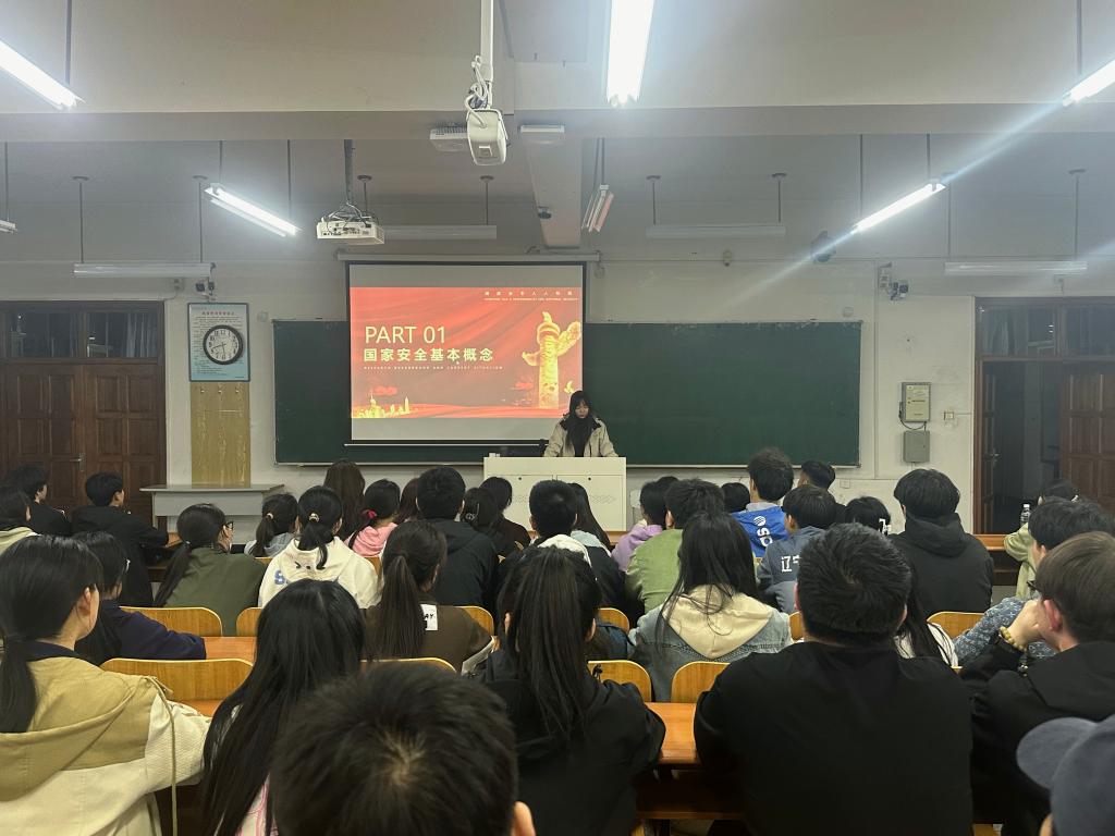 会上,辅导员以“总体国家安全观·创新引领10周年”为主题,从什么是国家安全、当前国际国内形势,危害国家安全罪相关法条内容、国家安全与青年使命担当四方面进行了深入讲解,并结合泄密我国稻种及制种技术危害国家安全等经典案例以及大学生因国家安全意识低成为犯罪目标等案例,与学生深入探讨了维护国家安全的必要性与深远意义。辅导员强调,国家安全是安邦定国的重要基石,是人民安居乐业的保证,维护国家安全是全国各族人民根本利益所在;希望全体学生都能将总体国家安全观念内化于心、外化于行,不断提高保密意识、防范意识,支持配合国家安全工作,自觉履行维护国家安全、保守国家秘密的义务,在思想上形成共识,在行动上达到自觉,为国家的安定和人民的幸福贡献青春力量。