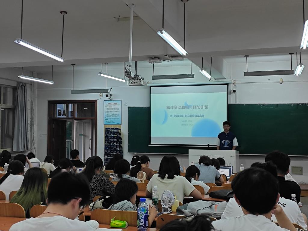 专题宣讲会上,宣讲人向同学们解读了国家资助政策的相关内容,包括高校家庭经济困难学生资助政策解读、各项助学金及奖学金的资助、勤工俭学等具体内容,同时对资助标准、申请条件、申请流程等具体事项进行了详细介绍,确保在座学生都能充分了解和掌握政策要点。在解读政策的基础上,宣讲人对预防金融诈骗、电信诈骗和违法高利贷等非法行为进行普及与宣传,帮助同学们更好地预防此类违法行为,他们结合实际案例,深入剖析了金融诈骗、校园网贷、电信诈骗和违法高利贷等诈骗行为的危害性,并向同学们讲解了诈骗“套路”的具体识别方法,帮助学生认清这些骗局的本质,提高自我保护能力。同时,宣讲人通过分享个人经历和感悟,引导学生树立正确的消费观念,不盲目攀比、不贪图享乐,珍惜国家和社会的关怀与帮助,鼓励同学们以实际行动回馈社会。此次讲座得到了学生的积极响应和热烈反响。同学们纷纷表示,通过此次学习,不仅加深了对国家资助政策的理解,还掌握了很多实用的防骗知识,受益匪浅,在今后的学习生活中将更加注重自身金融安全,树立正确的消费观和价值观,努力成为诚实守信、自立自强的优秀青年。