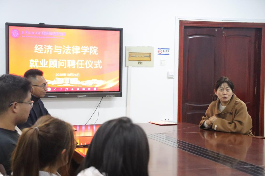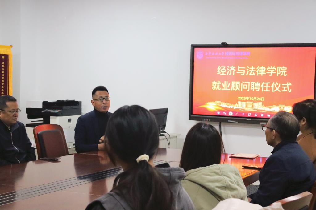 10月24日,经法学院于博识楼A305聘任鞍山市高新技术企业协会常务副秘书长赵红女士为就业顾问。学院党委书记赵智博、院长郭浩淼、委副书记张国华、学办主任李路云及学生代表参加了仪式。