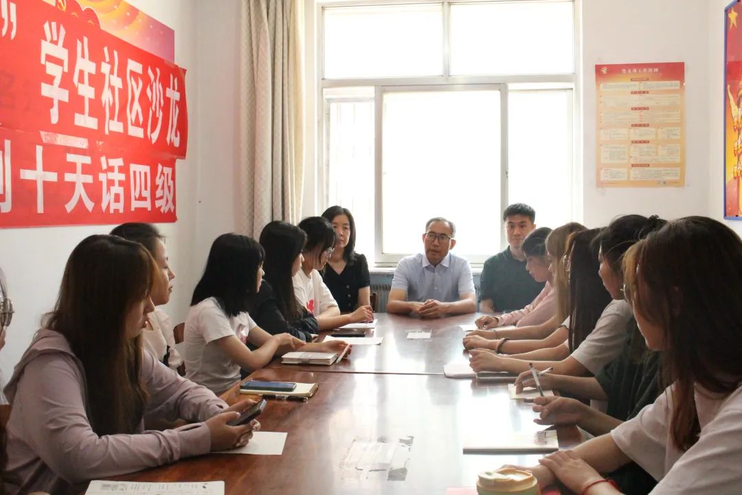 为助力经法学子备战英语四六级考试,帮助同学们更有针对性地复习备考,6月6日,经法学院于知行居103党团活动室开展“一站式” 学生社区沙龙——冲刺十天话四级活动。本次活动由金融21班郭明月和金融22-1班于翔琳主持,学院党委副书记张国华、学办主任齐艳萍、团委副书记张鹏飞、学院学生会学术科技部负责人项阳以及10余名学生参加了此次活动。