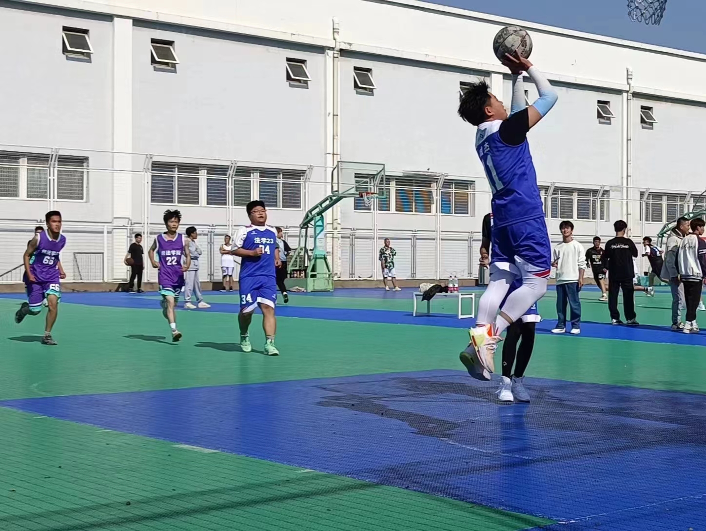 几天的比赛中,各队球员们斗志昂扬,以饱满的激情投入到每一场比赛中。比赛场上队员们身形矫健,反应敏捷,快攻、抢断、突破、上篮,各显神通,在同学们的加油助威声中打出了一场又一场精彩激烈的比赛。整个赛事精彩纷呈,攻防之间,是意识、技术的较量,更是意志、信心的比拼,球员们打出了经法学子昂扬向上的精神风采。