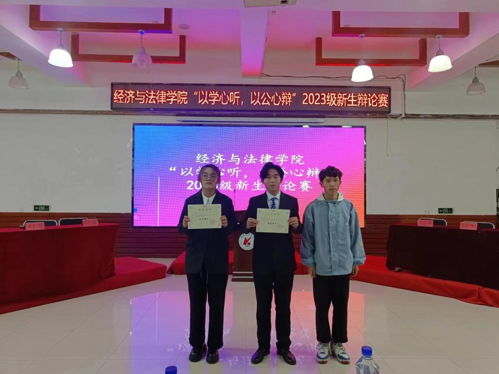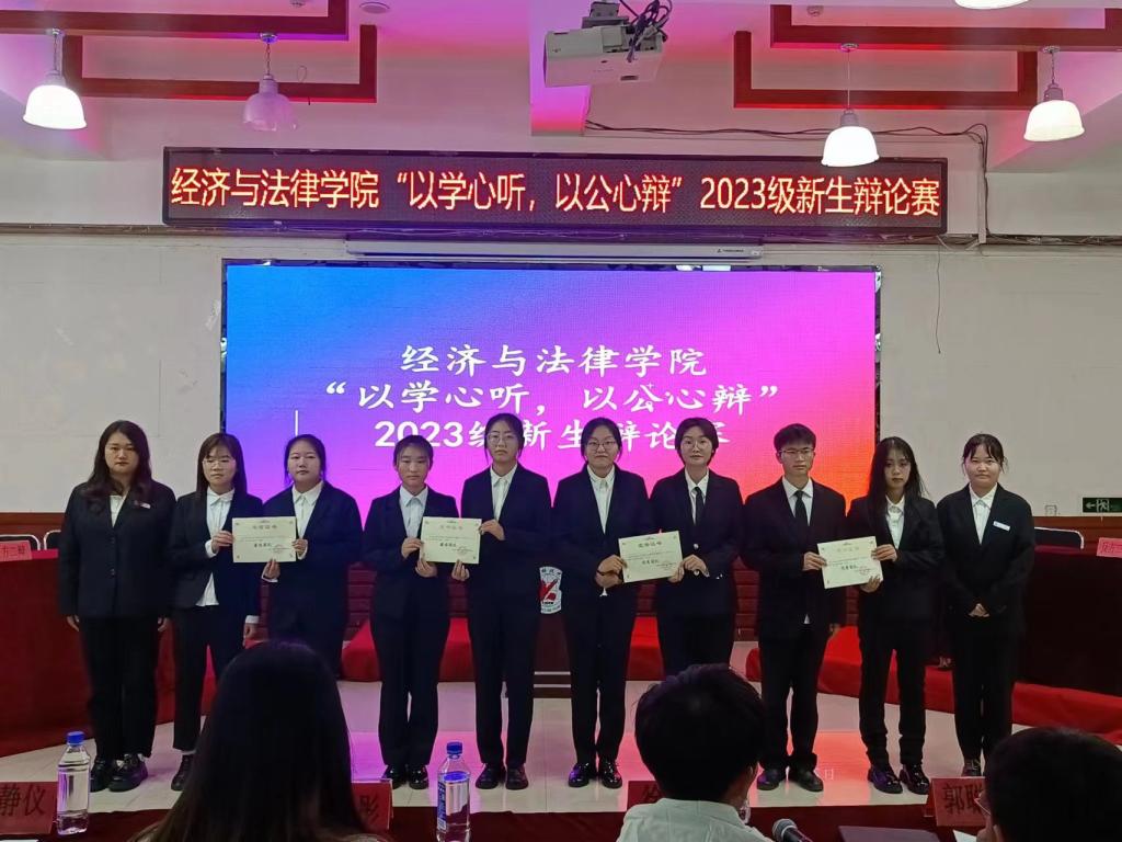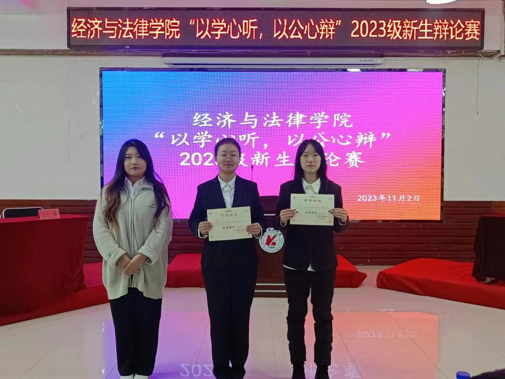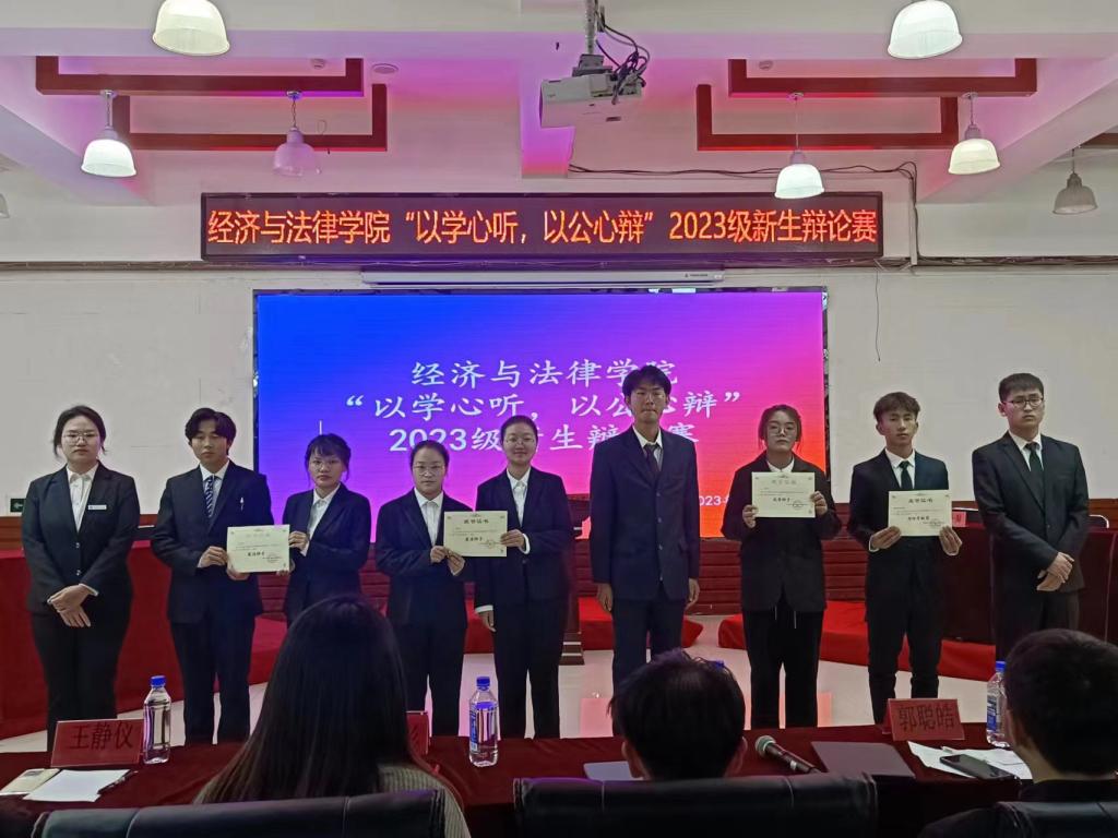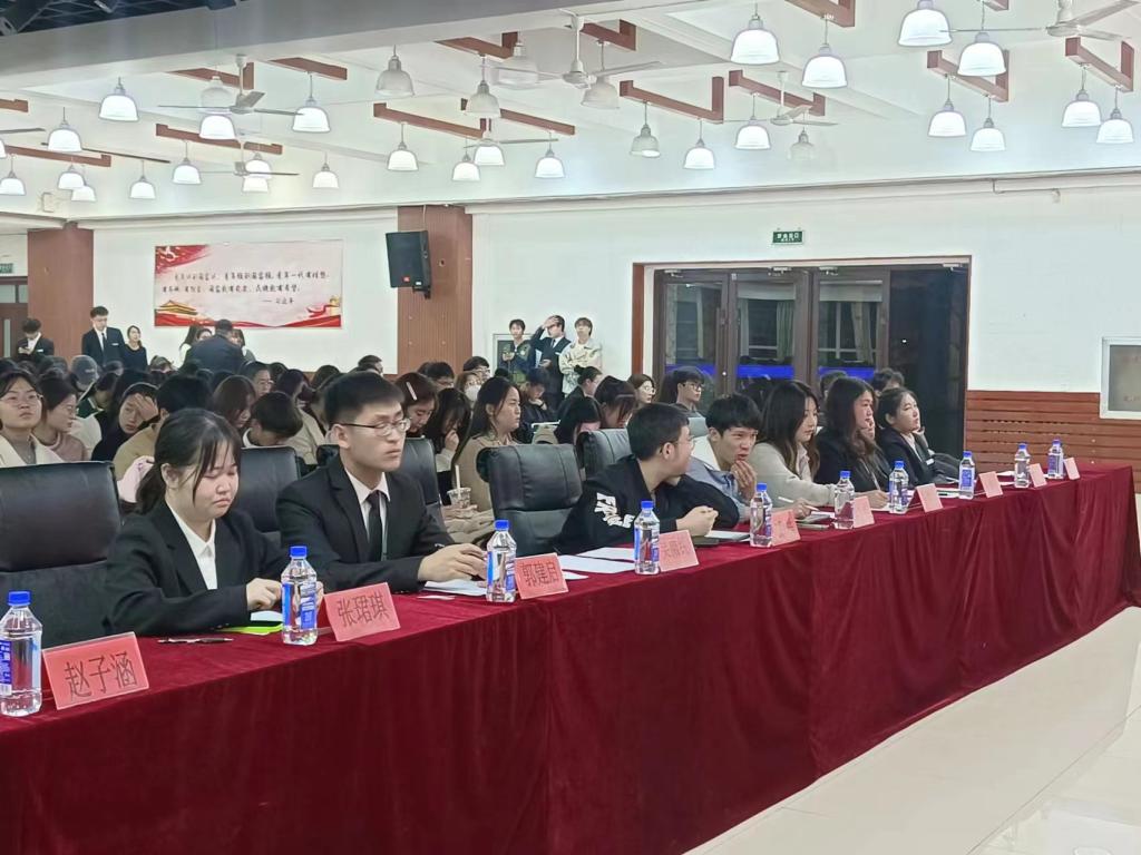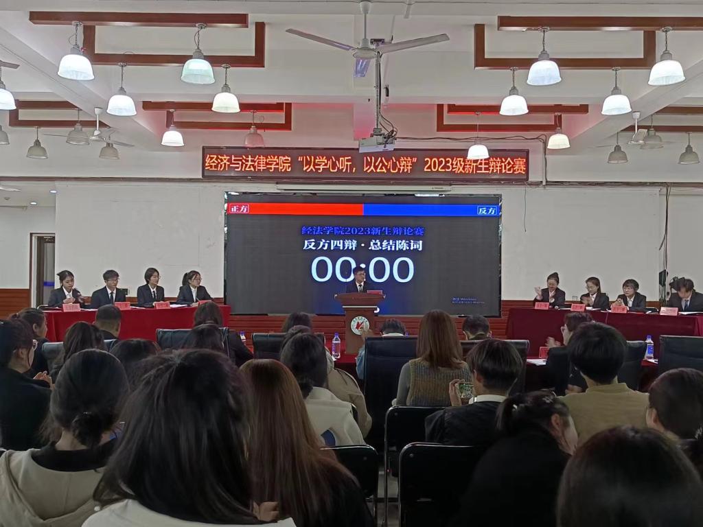 11月2日晚,经法学院于明德楼大学生活动中心举办“以学心听,以公心辩”主题辩论赛。本次辩论赛由金融23-2班白江悦主持,MK体育在线(中国)唯一官方网站辩论队负责人、思辨社社长徐延伟、经法学院辩论队队长韩雨彤、副队长郭聪皓以及经法学院分团委副书记、学生会主席团成员和各部门负责人出席活动并担任评委,2023级全体学生参加本次活动。