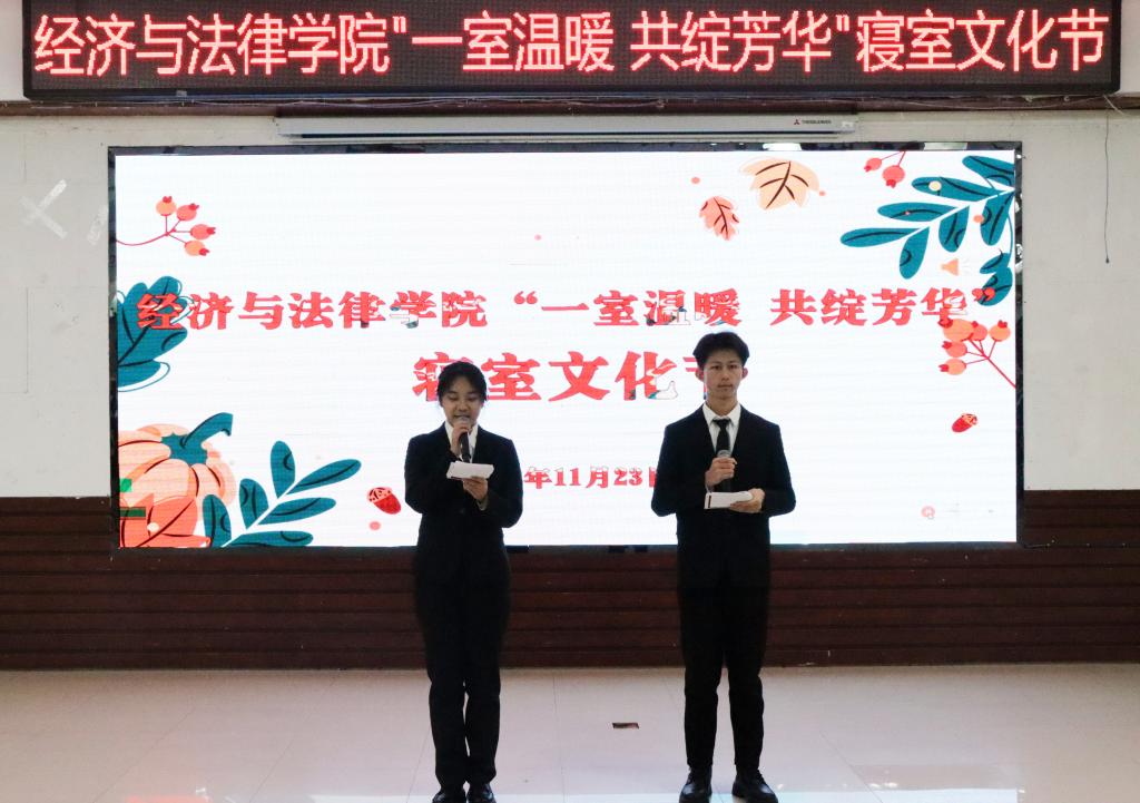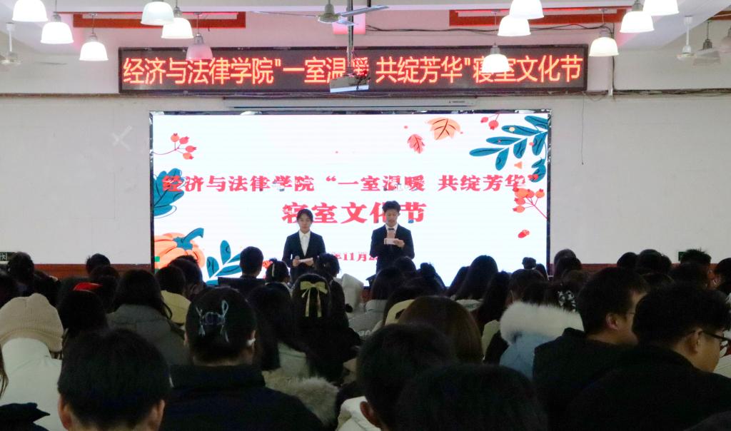 11月23日晚,经法学院于明德楼大学生活动中心举办“一室温暖,共绽芳华”主题寝室文化节。经法学院党委书记赵智博、团委副书记张鹏飞、团学骨干以及2023级新生共计200余人参加了本次活动。