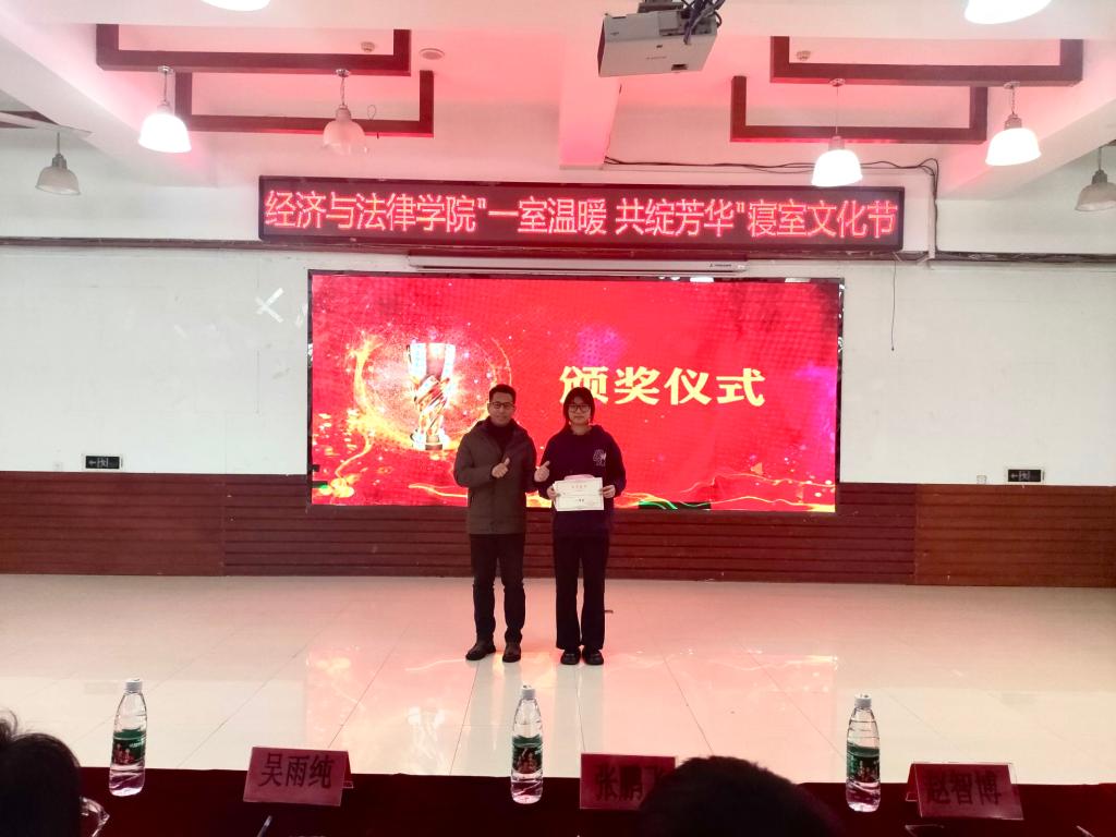 激烈的角逐过后,颁奖嘉宾为获奖同学颁奖。学院党委书记赵智博对本次寝室文化节作总结讲话。他表示,同学们要充分享受和利用大学时光,找到热爱,努力追求,并鼓励大家积极参加各种大赛以及文体活动,提高自身综合素质。同时,他强调,同学们要将大学作为新的起点,珍惜寝室缘分,与寝室同学共同努力,打造和谐温馨的寝室氛围。最后,他祝愿同学们在自己的努力和同学们的互相支持下,四年之后都能遇见更好的自己。
