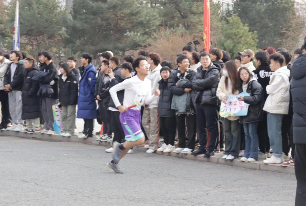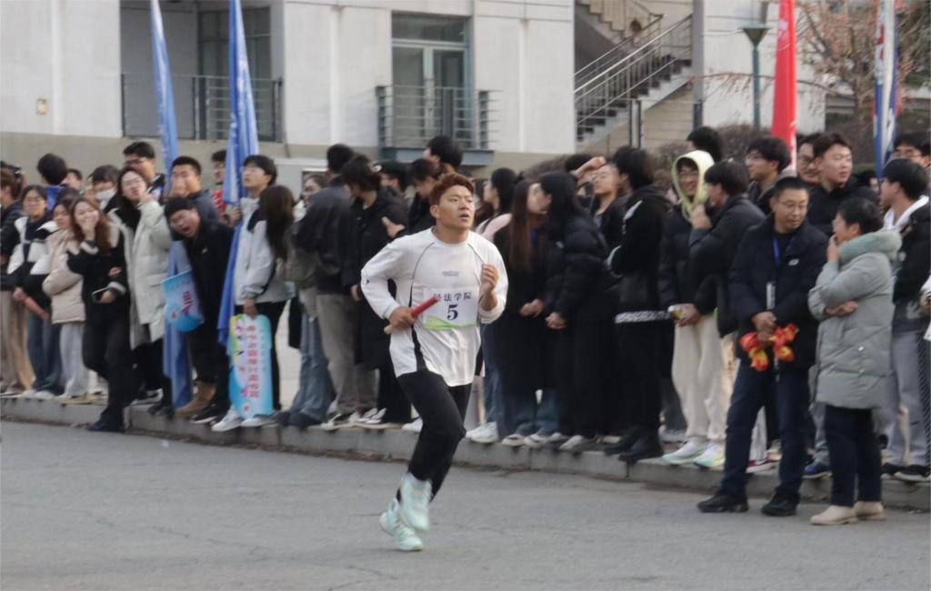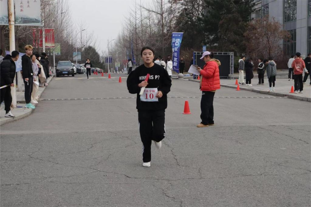 本次比赛分为男女两个组别,各学院派出男女各10名运动员参赛,以接力的形式进行比赛。13:30分,比赛准时开始,随着一声枪响,准备充分的经法运动员如离弦之箭,冲出起跑线。冬日天气虽冷,却挡不住运动员们如火一般的拼搏热情,他们在赛道上不畏严寒,全力奔跑。来自经法啦啦队同学们的欢呼声、呐喊声、加油声,声声震耳,此起彼伏,激励着每一名勇士冲向终点。运动员们在无数的期待和呐喊中奋力向前,英姿飒爽,充满活力。时间在流逝,赛道在延伸,多日训练的努力在此刻回报给追风少年们以加速的力量,汗水在阳光的照耀下熠熠生辉。据悉,此次比赛在学院领导的高度重视下,学院学生会体育部认真负责地组织策划、选拔队员,带领20名参赛队员进行了科学训练,学院团委、学生会各成员在比赛期间做好了各项后勤保障工作。学院党委书记、副书记和团委书记时刻关注同学们的训练情况,为了给同学们加油鼓劲,曾与同学们在体育场上一同训练。在每一个人的倾情付出下,经法学院的队员们再次创造历史,取得近几年来学院在该项赛事上的最好成绩。