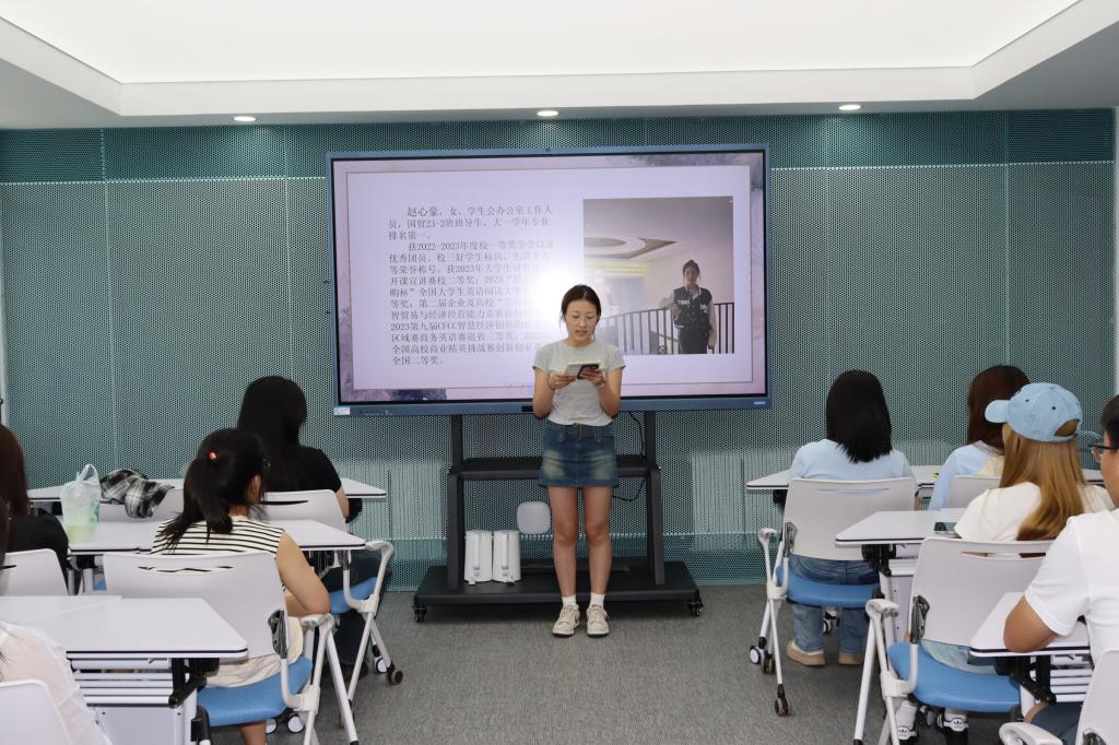 会议伊始,王乔诗首先介绍了本次活动开展的目的及意义。同时,她强调期末考试作为大学学习的关键节点,不仅是对同学们知识掌握程度的检验,也对学生的学业发展产生着重要影响。分享会上,赵心豪根据自己以往的学习经验,为同学们总结了期末复习六点技巧:明确复习目标、制定复习计划、注重基础知识、整理复习笔记和资料、理清易混淆的知识点以及针对性地背诵得分点。她表示,期末复习是一个毅力与耐心并进的艰难路程,既要保持良好心态,也要劳逸结合,做好时间规划。申博轩分别从考试前和考试中两方面进行分享。她表示,考前有条不紊的复习至关重要,在学期剩余的1-2周的时间里,要充分运用好学习资料,结合历年真题来归纳题型,巩固模糊知识点;在考试中,要对自己保持信心,战胜焦虑,以冷静、自信、专注的状态和诚信的态度应对考试。随后,同学们就自己遇到的学习问题积极展开讨论并向两位学姐提出了自己的疑惑。国贸23-2申佳鹭提出了关于学习时注意力容易分散如何来集中注意力的疑惑,赵心豪表示,可以将一切容易扰乱注意力的事务远离自己,比如将手机静音或关机、选择一个安静的学习环境等都可以大大提高学习效率。大家纷纷提出了自己的困惑,针对大家的疑问,赵心豪和申博轩耐心且细致地进行了回答。