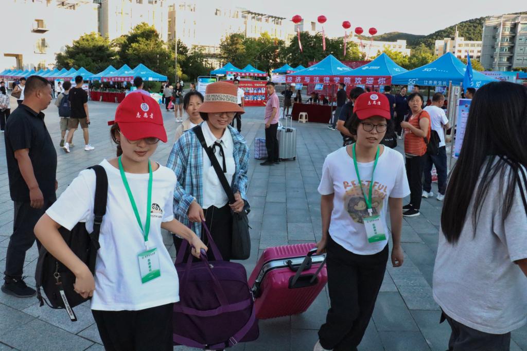 他们向远道而来的新生和家长