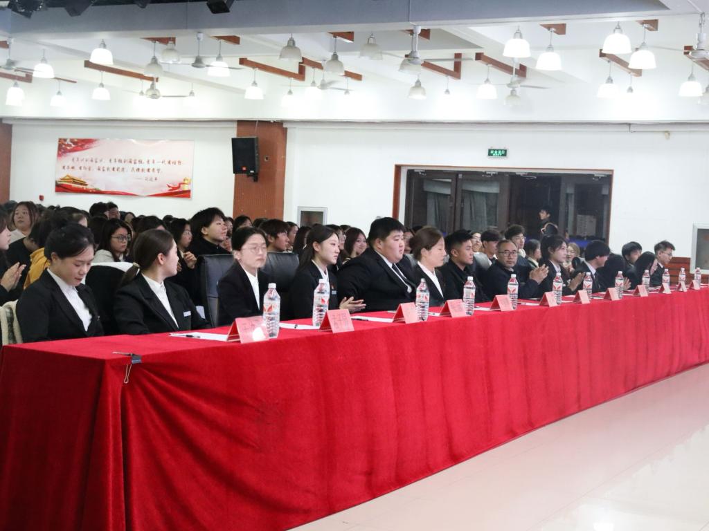 11月13日晚,经法学院于明德楼大学生活动中心举办“同寝共趣 宿说精彩”寝室文化节。经法学院党委副书记张国华、团委副书记张鹏飞、团学骨干以及2024级新生共计300余人参加了本次活动。