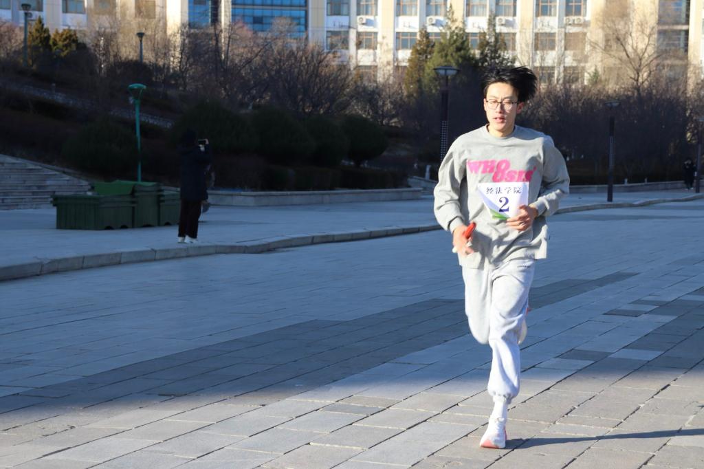 本次比赛为男女双组竞技,各学院男女各10位运动精英,以环校接力的方式展开激烈角逐。上午9:00,随着一声发令枪响,比赛正式拉开帷幕。寒风凛冽,但运动员们的斗志丝毫未减。赛场上,运动员们你追我赶,每一次交接棒都充满了紧张与期待,每一次冲刺都凝聚着团队的力量与信念。赛道旁,欢呼呐喊声交织,冬日的寒意被这股青春活力驱散,激励着运动员们不断向前。当最后一抹身影划破终点线的那一刻,时间见证了努力的回报,汗水铸就的辉煌在阳光下熠熠生辉。