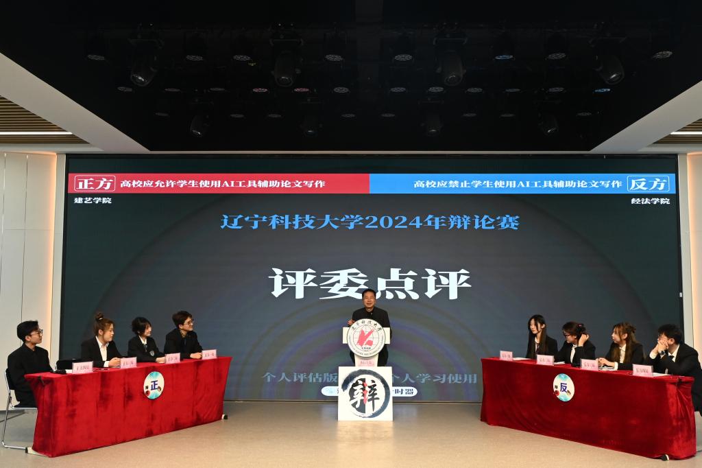 辩论过程中,双方辩手以“高校应允许/禁止学生使用AI工具辅助论文写作”为辩题,我方一辩选手以具体实例和相关领域的专业研究结果为依据,通过分析学生使用AI工具辅助论文写作所带来的一系列弊端有力地阐明了“高校应禁止学生使用AI工具辅助论文写作”的己方观点。同时,我院辩手针对对方论述中出现的漏洞展开反击,现场气氛热烈,火花四溅。小结环节,我方辩手在总结己方观点的同时结合现场情况,以更深层次的解析将整场辩论推向高潮,准确而有力的展现了我方观点。最终,经过评委们的严谨评审,经法学院辩论队斩获了MK体育在线(中国)唯一官方网站大学生辩论赛的冠军!