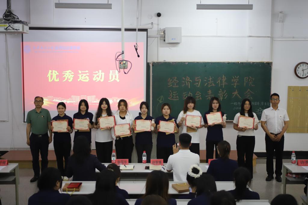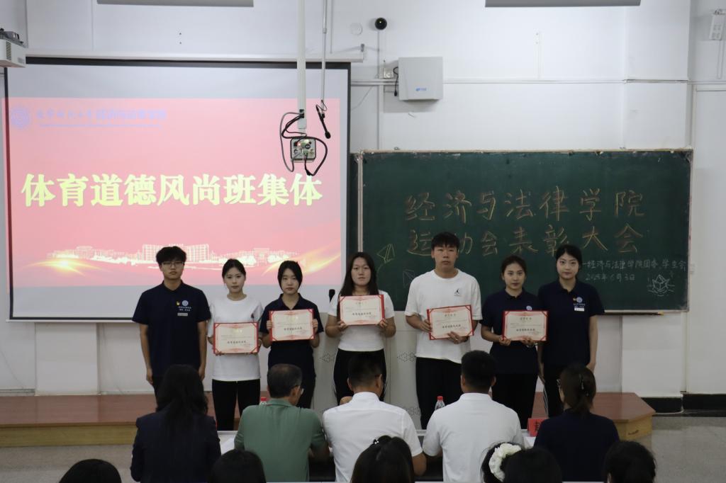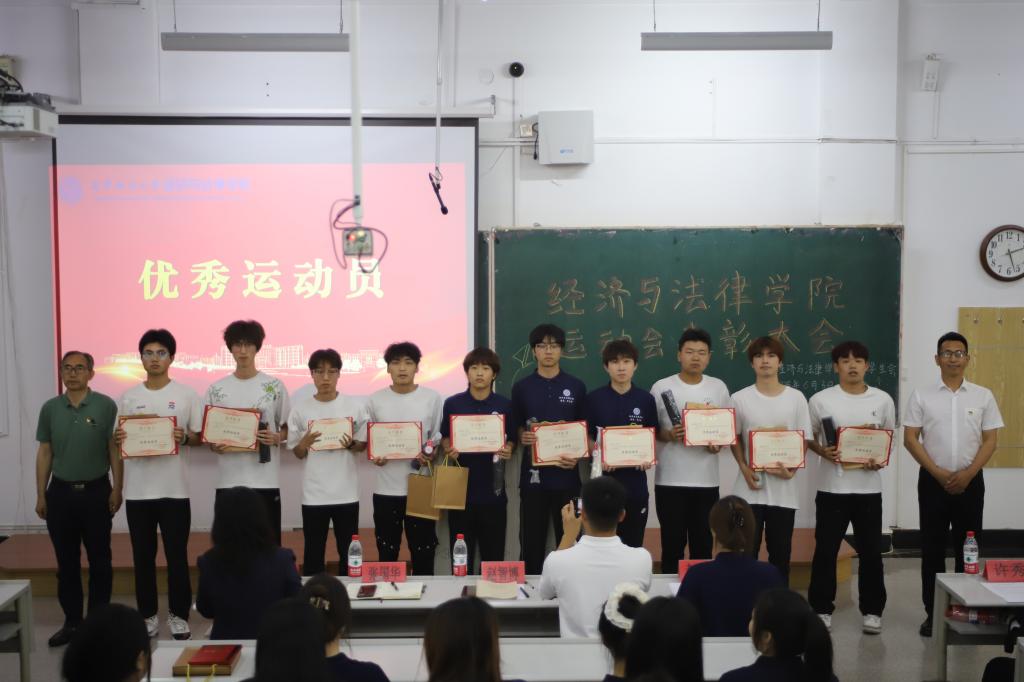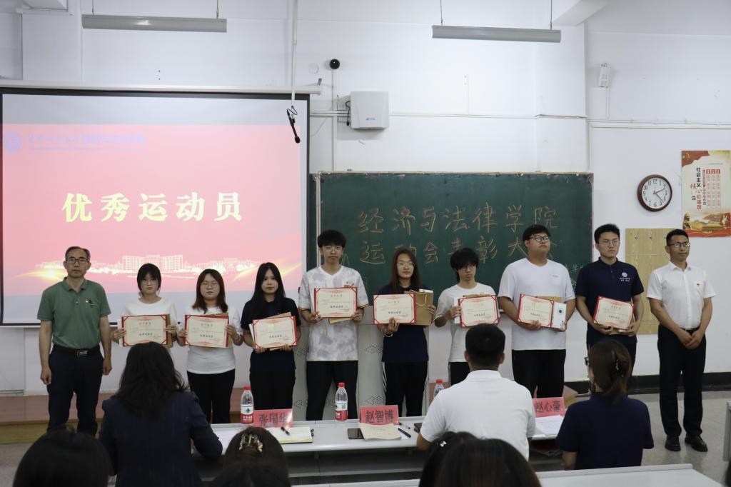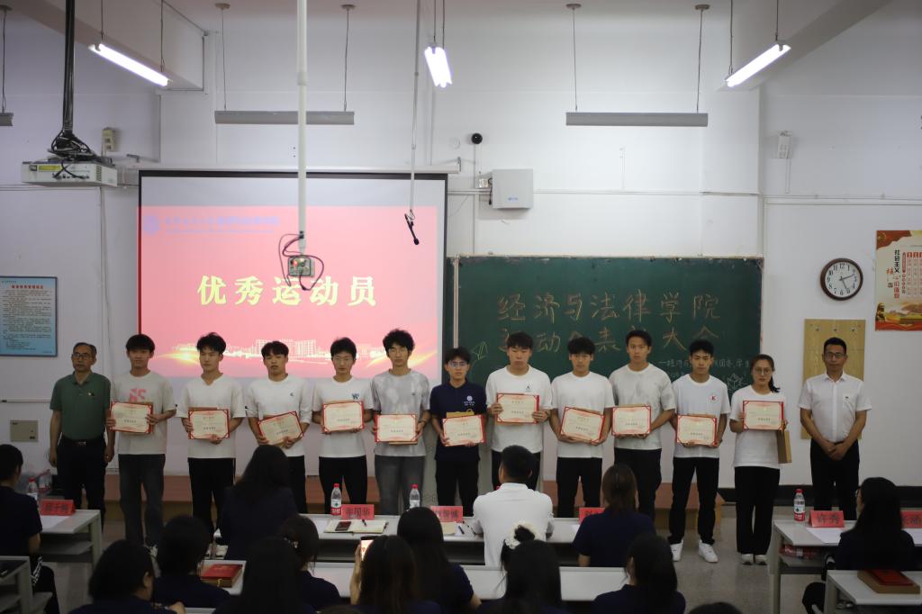 6月3日,经法学院于博学楼C102召开第五十三届运动会表彰大会。会议由学院学生会主席团成员刘家辉主持,学院党委书记赵智博、党委副书记张国华、学办主任齐艳萍、团委副书记张鹏飞出席会议,学院全体团学骨干及运动员近200人参加会议。