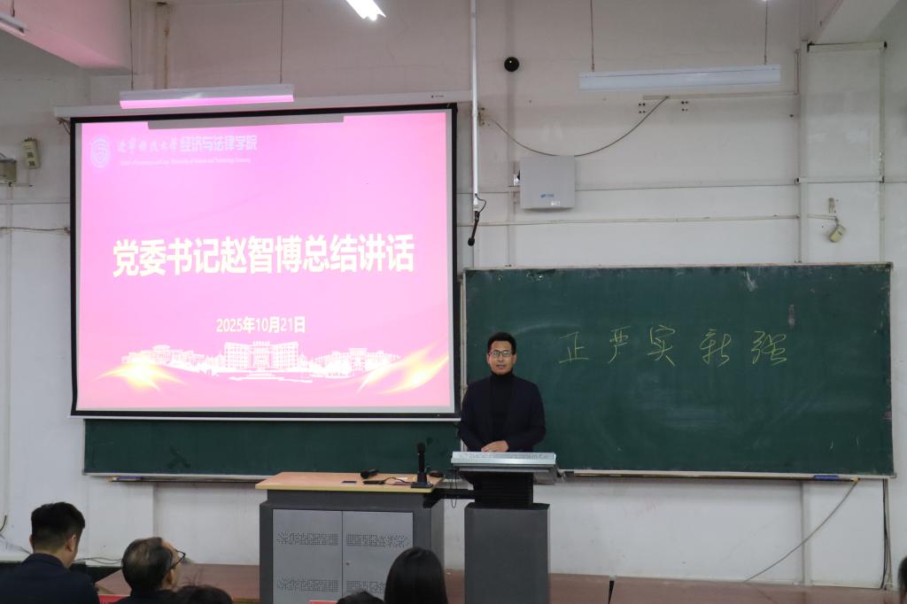 最后,学院党委书记赵智博以“学风建设有我,再续经法荣光”为主题作总结讲话。他从“正、严、实、新、强”五个方面对学生干部提出明确要求,强调要以端正的态度、严格的自律、务实的作风、创新的思维和坚强的能力,发挥“领头羊”作用,推动学院学风建设走深走实、提质增效,为经法学院高质量发展贡献青春力量。