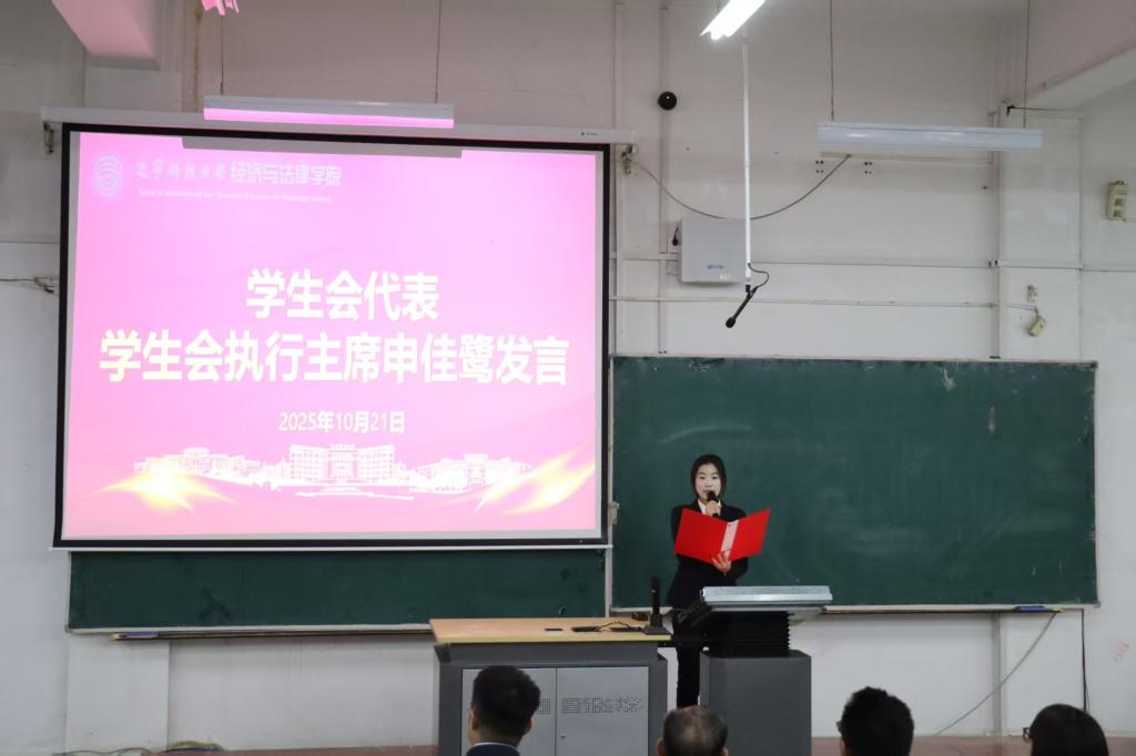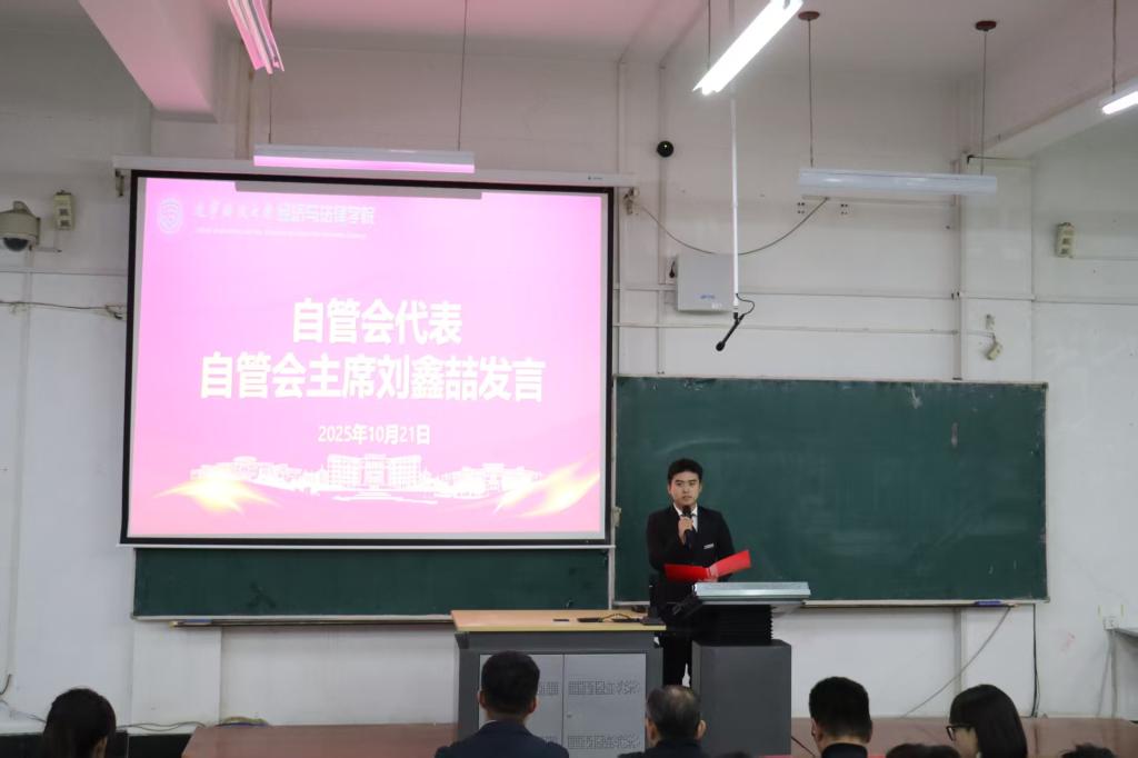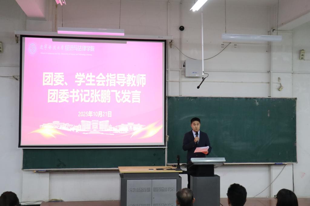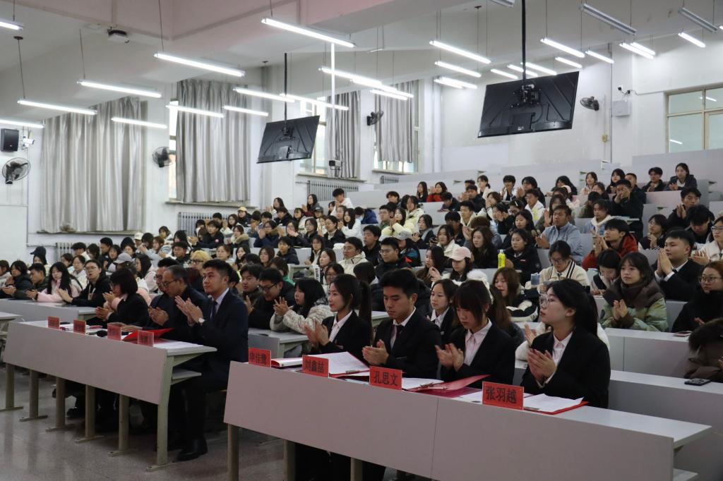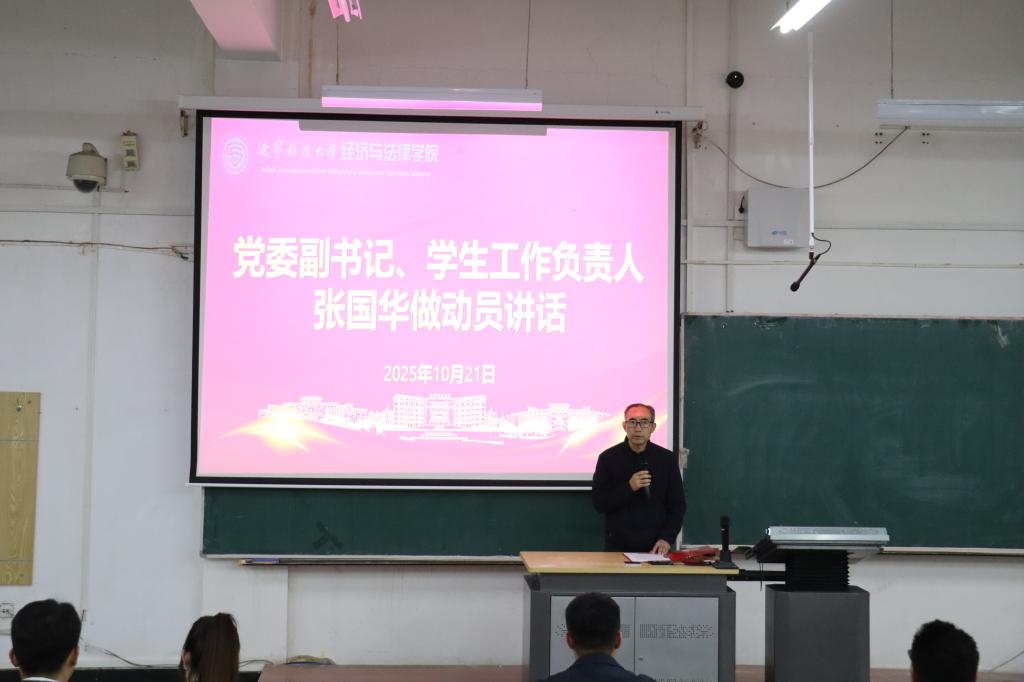10月21日,经法学院于博学楼C202召开2025年“学风建设 干部先行”学生干部学风建设动员大会。学院党委书记赵智博、党委副书记张国华、学办主任李路云、团委书记张鹏飞及250名学生干部出席会议。大会由分团委组织委员任芷瑶主持。