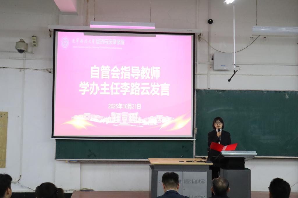 随后,院学办主任李路云强调,学院自管会要以“自我管理、自我服务、自我教育、自我监督”为抓手,从“立规矩、搭平台、浓氛围、守底线”四个方面发力,引领优良学风养成,推动学风建设走深走实。院团委书记张鹏飞指出,学生干部应以思想引领为魂、活动载体为基、服务保障为要,练就真本领、凝聚团队力,以“持久战”的姿态推进学风建设。