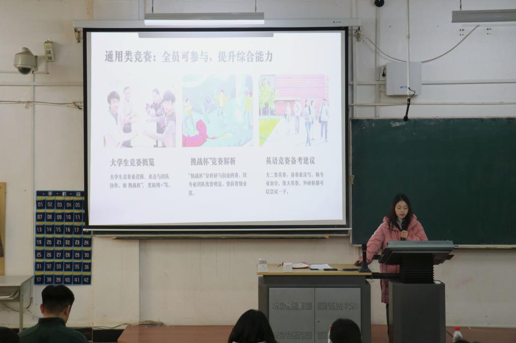 会上,今年成功推免至东北财经大学的金融22-2班杨斯雯结合自身从“迷茫大一”到“笃定大三”的成长历程,分享了学业提升的核心方法。她指出,数学、英语等基础课程要做到“吃透内容 + 刷题复盘”,专业课程则可通过思维导图搭建系统化知识框架;同时鼓励同学们多参与各类竞赛,积累实战经验,以持续、稳定的行动促进自我成长。