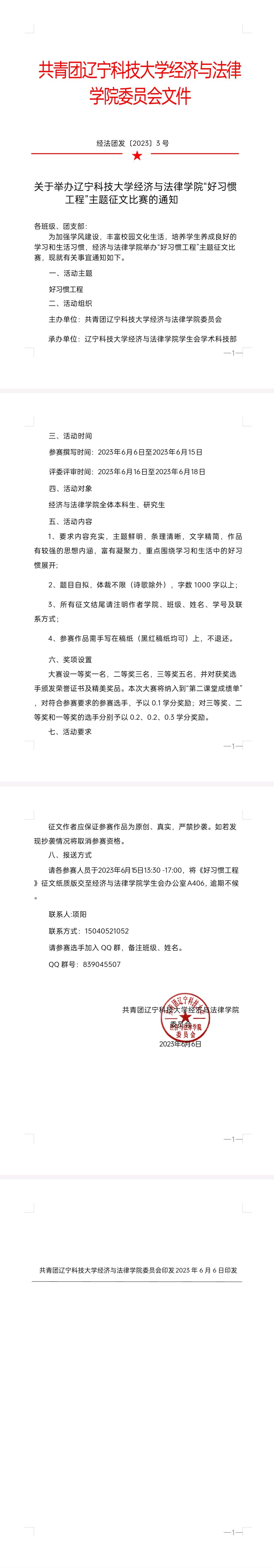 关于举办MK体育在线(中国)唯一官方网站经济与法律学院“好习惯工程”主题征文比赛的通知