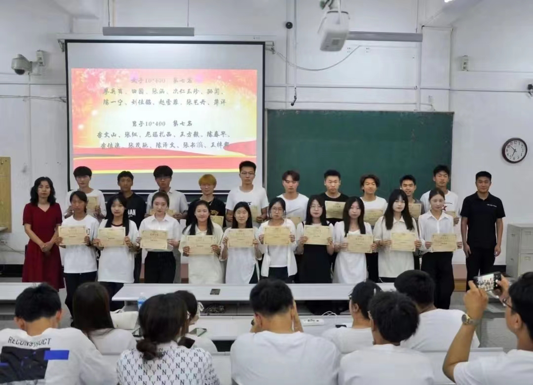 会议伊始,通过一段视频带领大家回顾了在刚刚结束的第五十一届校运动会上经法运动健儿的精彩瞬间,再现了健儿们在运动场上的矫健身姿。随后,学院学生会执行主席代郁璇和体育部负责人孙嘉政为经法学院方队指导教官颁发荣誉证书;学院学生会主席团成员兼办公室负责人刘爱琳为2名大四学长颁发特殊贡献奖;学院学生会主席团成员赵海瑞、分团委副书记王莞舒为法学22-1班等10个班级颁发体育道德风尚奖;学院学办主任齐艳萍、团委副书记张鹏飞为陈春早等80余名院级优秀运动员颁发荣誉证书。每一位获奖成员的脸上都洋溢着激动且自豪的笑容,现场气氛热烈,掌声阵阵。