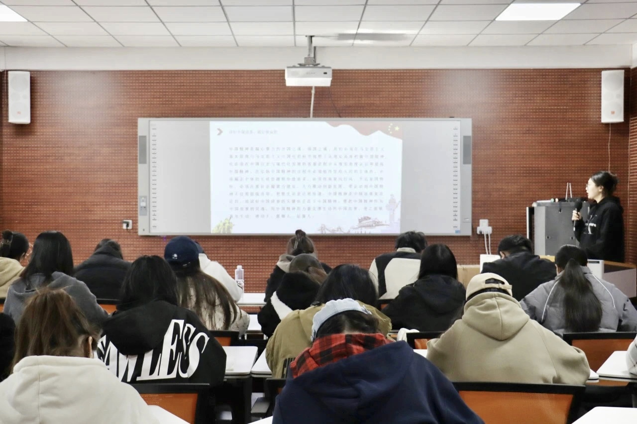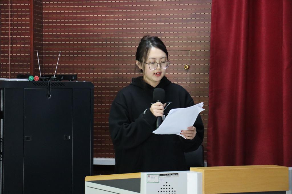 宣讲会上,高悦通过青年学生的视角以“讲好中国故事,践行使命担当”为主题,围绕中国精神的含义、时代价值以及新时代青年的做法三个方面,向同学们介绍了讲好中国故事的方法与意义。她强调,讲好中国故事是增强民族自信心和凝聚力的关键。作为新时代青年,我们应与时俱进,不断突破,探索讲好中国故事的新形式,让宣讲更具传播性、积极性。同时,她以十八洞村精准脱贫小组故事为例,鼓励同学们勇于担当、敢于作为,将个人梦想融入国家和民族的伟大梦想之中,以强烈的进取心、责任心,担当起时代赋予的使命。