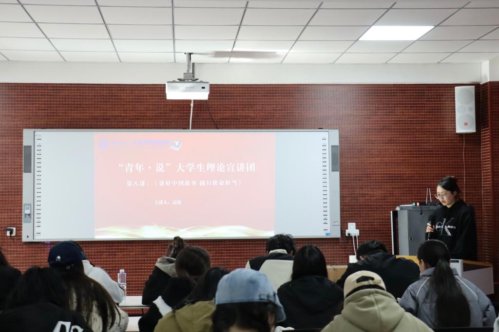 近日,经法学院于博识楼A407开展“青年·说”大学生理论宣讲。此次宣讲由学院“青年·说”大学生理论宣讲团成员、学生第三党支部宣传委员高悦担任主讲人,经法学院30余名团员青年参加了宣讲会。