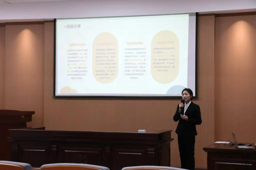 学生会执行主席兼办公室负责人赵心豪等5名学生骨干代表依次上台发言,就个人工作心得及学习经验进行了分享。他们勉励各位学生骨干积极参与志愿服务、学科竞赛、社会实践等活动,充分发挥模范带头作用。在分享过程中,他们展示了英语四六级的学习资源及成长规划,着重强调了平衡学业和工作之间关系的重要性,为学院优良学风的建设奠定了坚实基础。