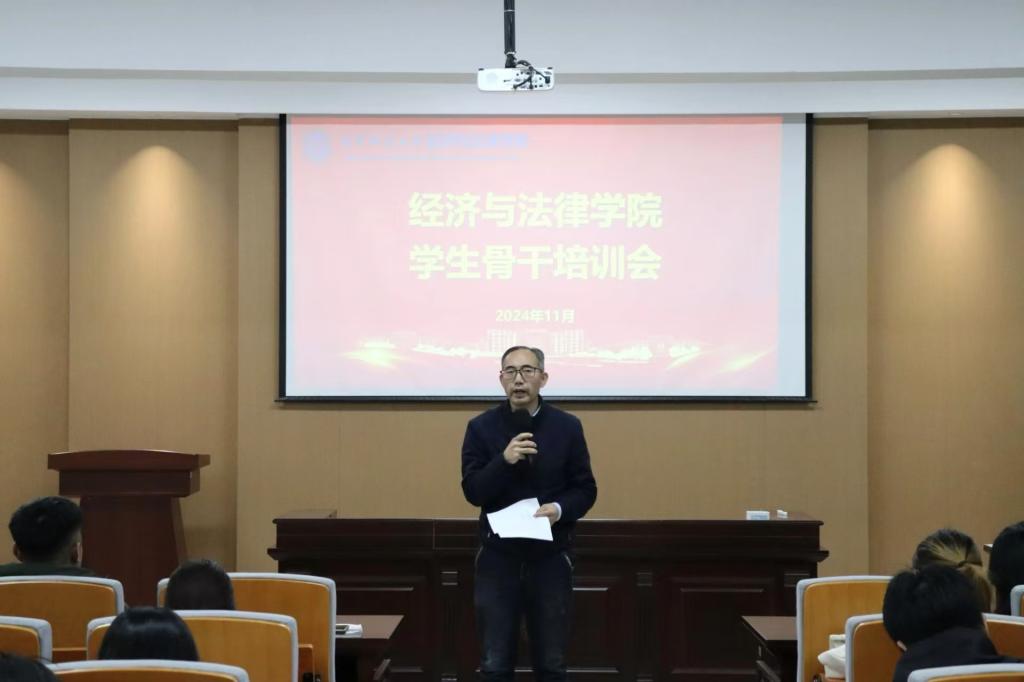 11月7日,经法学院于博识楼A402召开“星火计划”学习经验交流会暨学生骨干培训会。学院党委书记赵智博、党委副书记张国华、学办主任齐艳萍、团委副书记张鹏飞出席会议,2024级全体班委会成员及2022、2023级班长、团支书参加了会议。本次会议由学生会学术科技部工作人员刘兆薇主持。