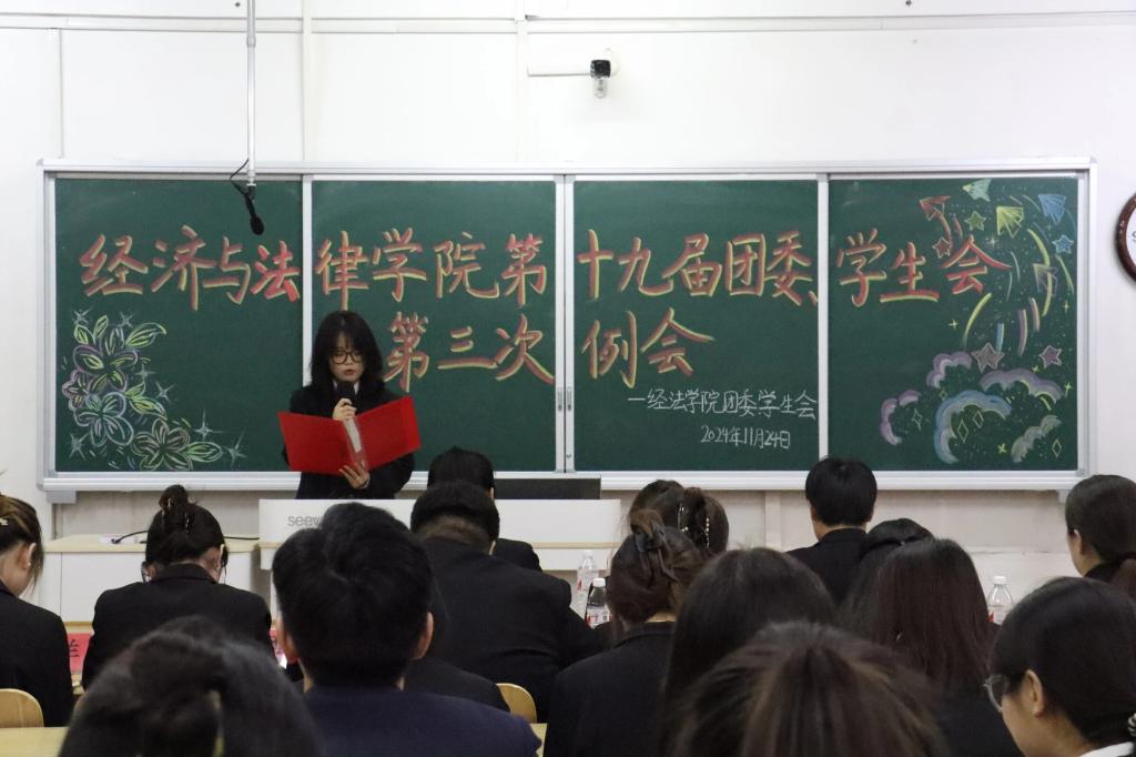 11月24日,经法学院于博学楼c413召开第十九届团委、学生会第三次例会。会议由学院学生会执行主席兼办公室负责人赵心豪主持,第十九届团委、学生会全体团学骨干参加了本次会议。