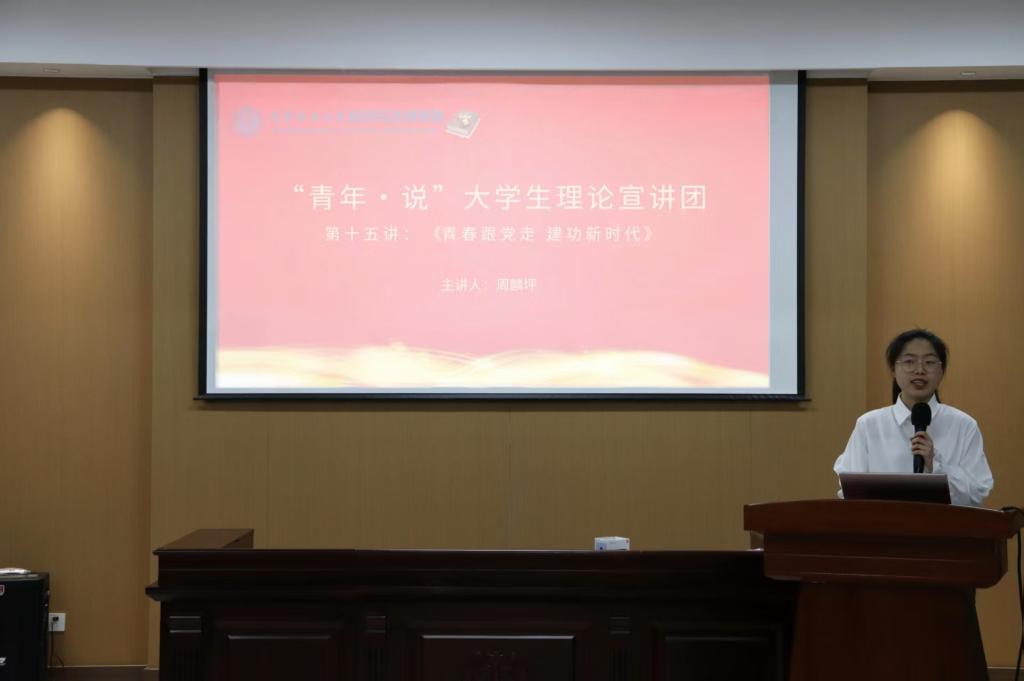 近日,经法学院于博识楼A402开展“青年说”大学生理论宣讲。此次宣讲由学院研究生第四党支部书记周麟坪担任主讲人,共计94名团员及入团积极分子参加了宣讲会。