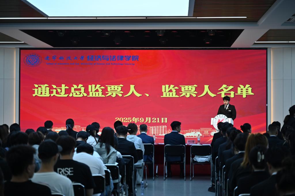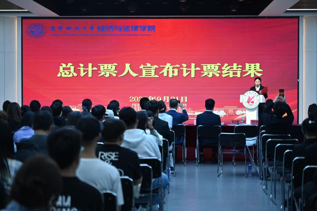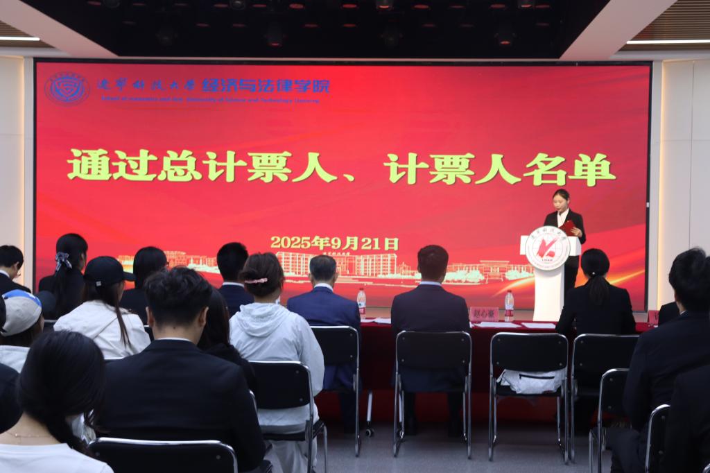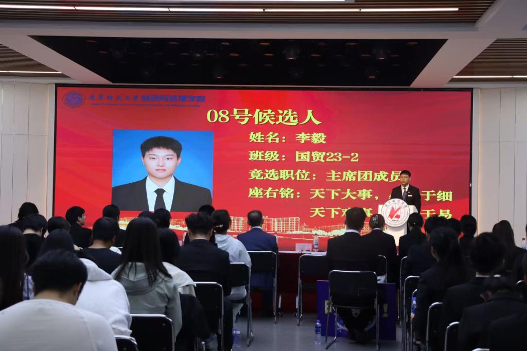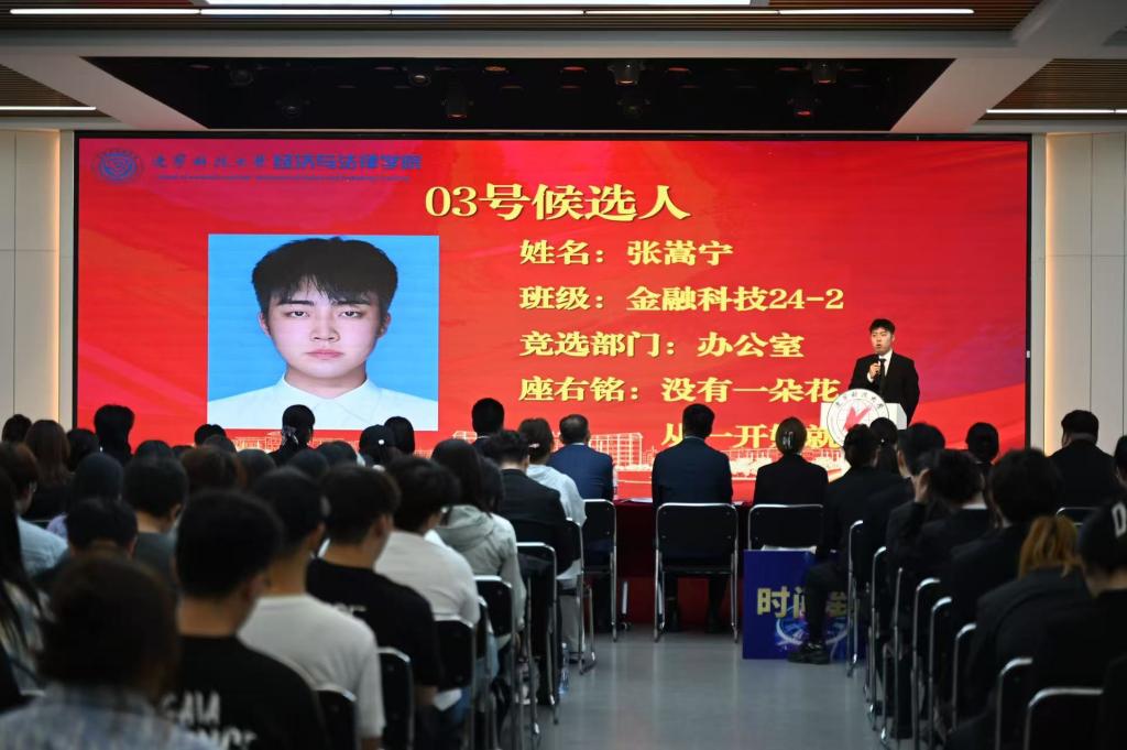 在竞选环节,候选人依次登台发表演讲,围绕个人经历、竞选初心和未来规划等方面进行阐述。演讲现场气氛热烈,多位候选人提出了切实可行的工作设想:有的着力于推动学术交流与思想引领,有的强调丰富校园文化与志愿服务,有的则提出完善信息反馈机制、拓展跨院合作与社会实践机会。大家还结合新媒体传播优势,提出要打造更具影响力的学院品牌形象。真挚的表达和饱满的热情赢得阵阵掌声,充分展现了经法学子积极进取、勇于担当的青春风采。大会采用不记名投票的方式,严格遵循公平、公正、公开的原则进行差额选举。