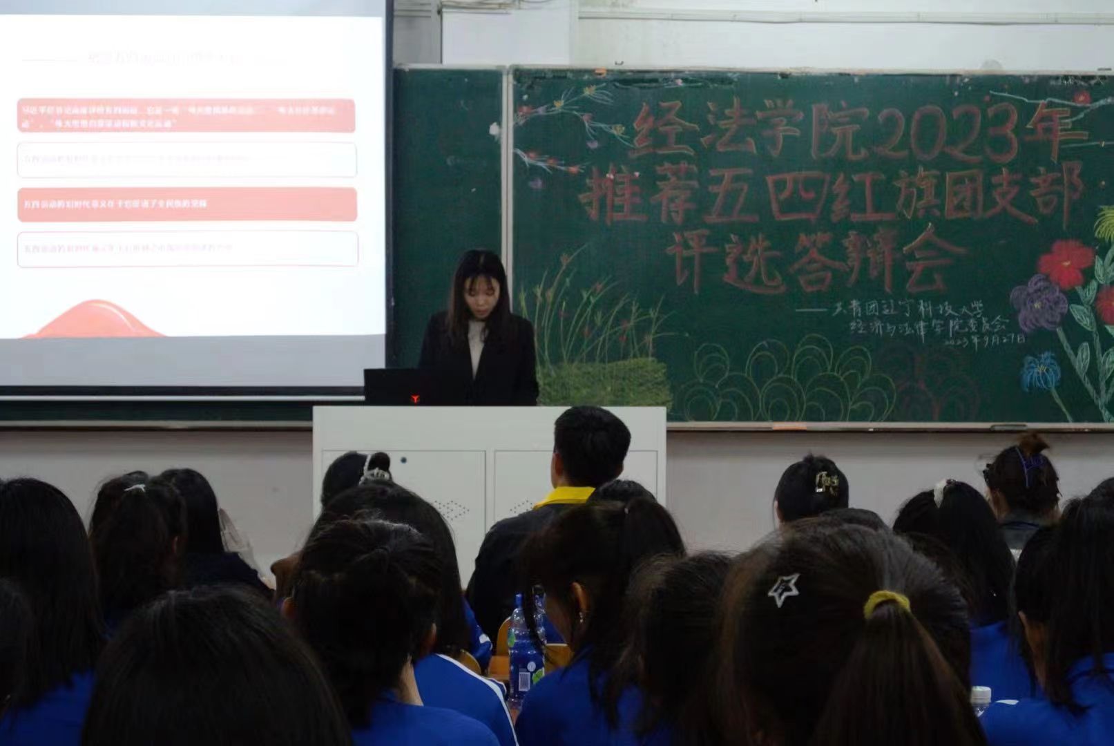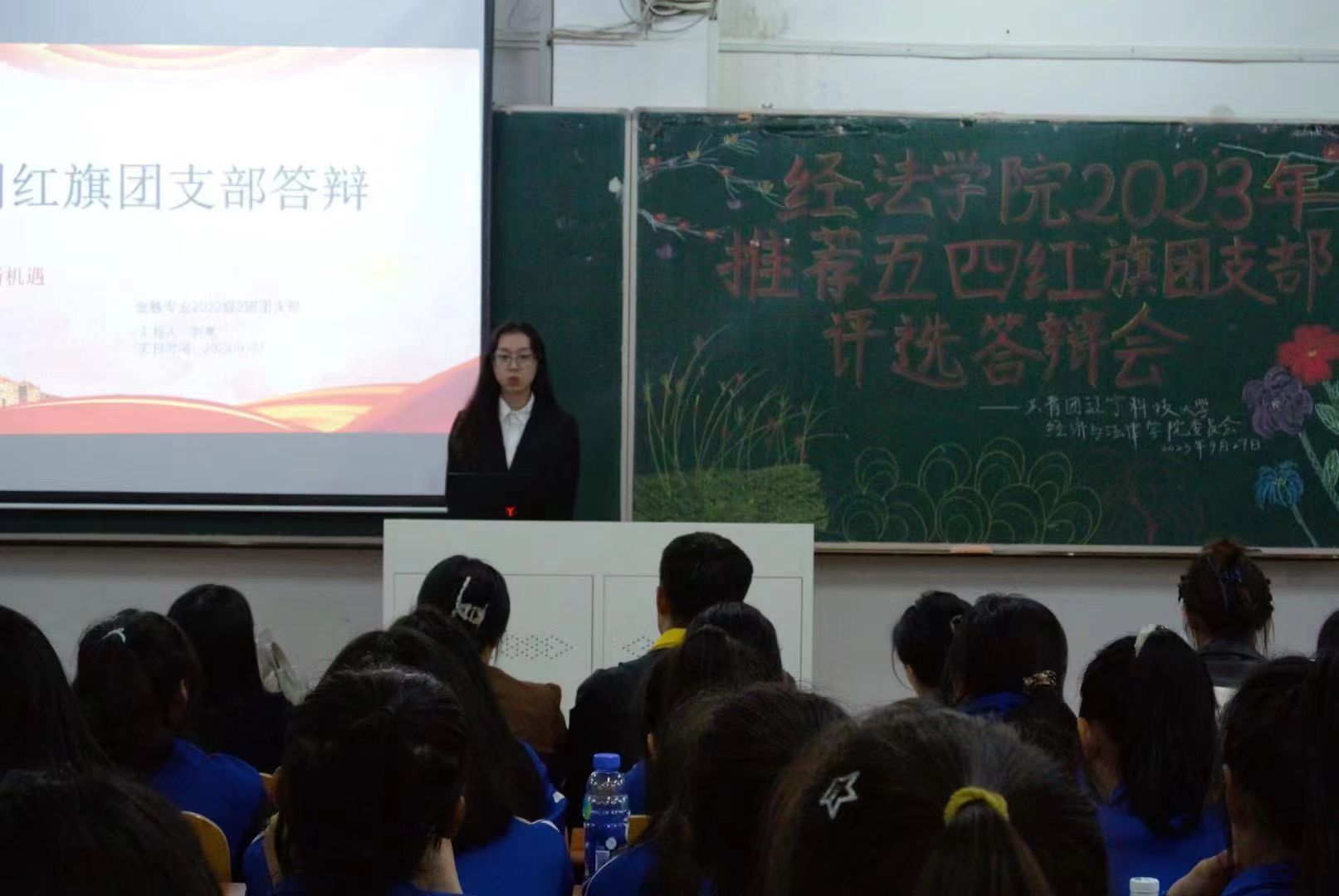 经过前期申报与民主评议等环节,共有5个团支部参与本次答辩会。各团支部书记将文字与图片相结合,从支部人员组成、“青年大学习”网上主题团课学习、主题团日活动以及班级参加志愿公益活动等方面全面阐述了团支部在学习成果、组织建设、精神面貌以及综合素质能力等方面取得的成就。最后,学院团委副书记张鹏飞对此次评选答辩会进行了总结并提出建议,他充分肯定了各团支部在工作上取得的优秀成绩,再次强调了各团支部要切实加强基层组织建设,不断提升团支部的引领力,并继续构建班团一体化,提升团支部对青年学子的吸引力。同时,各团支部也要创新开展主题团日活动,努力把团支部建设好,充分发挥团支部的示范引领作用,更好地建设班级,展现经法风采。最后,法学22-2和金融22-1团支部荣获本次五四红旗团支部。