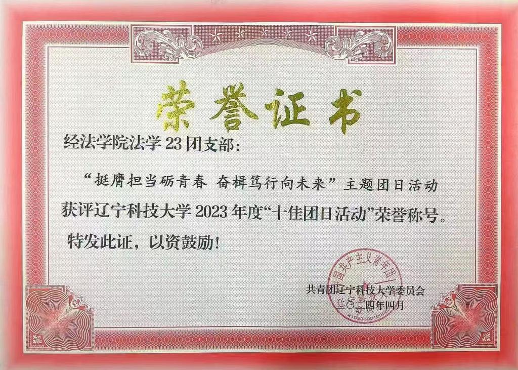 在社会实践和志愿服务方面,他一直以“有为、担当”为工作主旨,以“志愿服务”为工作抓手,带领大家将理论与实践紧密结合。他积极参与学院“小红帽”志愿服务活动,带领团员青年、法律协会成员定期深入南华街道化北社区、红岭街道中港花园社区、鞍山市“梦想之家”等地开展普法宣传活动,为社区居民在法律问题上答疑解惑,服务覆盖3000余人次。作为法律协会负责人,他多次组织参与模拟法庭系列活动。支部团员青年也在他的号召下,积极参与“返家乡”、扬帆计划、把我的大学带回母校、暑期“三下乡”等社会实践活动,真正做到了“实践育人成果好”。法学23班同时荣获MK体育在线(中国)唯一官方网站2024年度“学雷锋志愿服务先进集体”。