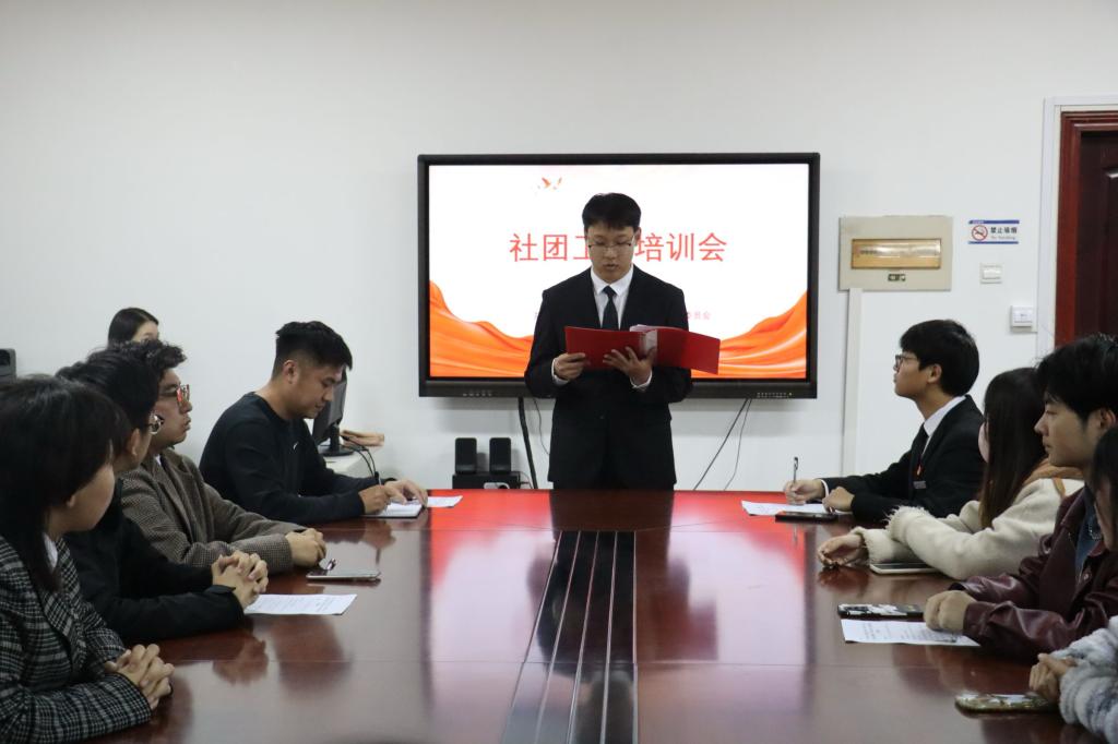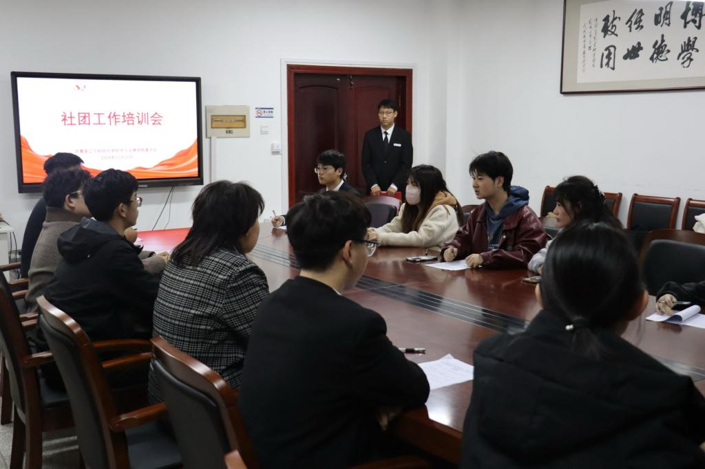 11月15日,经法学院于博识楼A305召开了学院社团工作培训会。本次会议由学院团委实践与社团指导中心副主任李毅主持,学院团委副书记张鹏飞、学生团委副书记兼实践与社团指导中心主任刘帅家以及法律协会、财经学会、爱唱联盟三个社团的相关负责人及工作人员参加了会议。