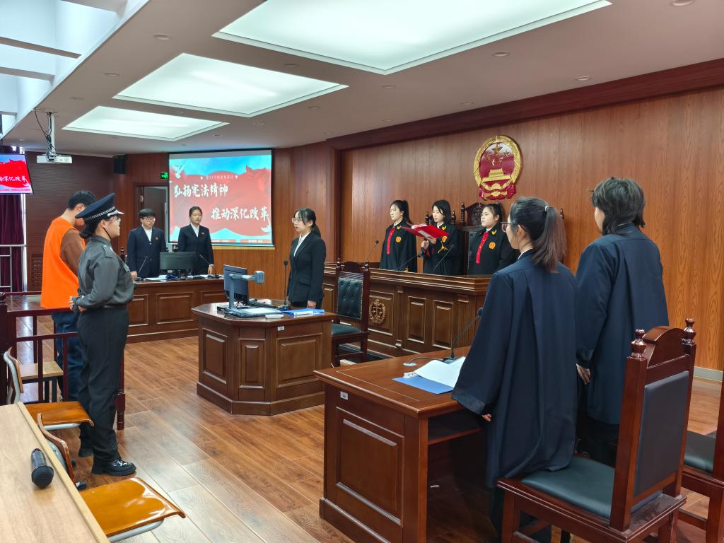 最后,全体参会人员共同观看了模拟庭审,精彩的演绎增强了学生对宪法的理解,体会到《中华人民共和国宪法》作为我国根本大法的庄严和神圣地位。在场人员纷纷表示,将厚植爱国主义情怀,成为宪法的忠实崇尚者、自觉遵守者、坚定捍卫者和积极传播者。