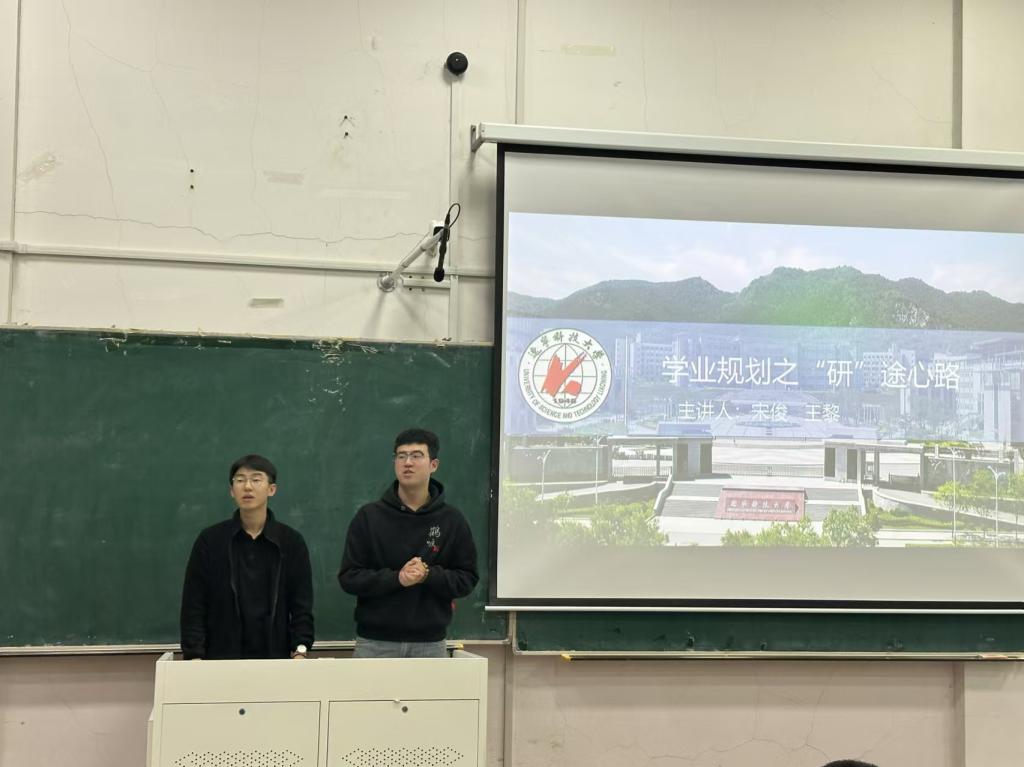 宋俊和王黎则以对话式演讲的方式让现场同学耳目一新,两人一唱一和,很快使现场氛围活跃起来。他们以轻松幽默的方式,讲述了自己的考研经历和心得体会,分享了考研的注意事项和复习计划;以“过来人”的身份告诉“萌新们”早做规划的重要性,鼓励大家勇敢逐梦。